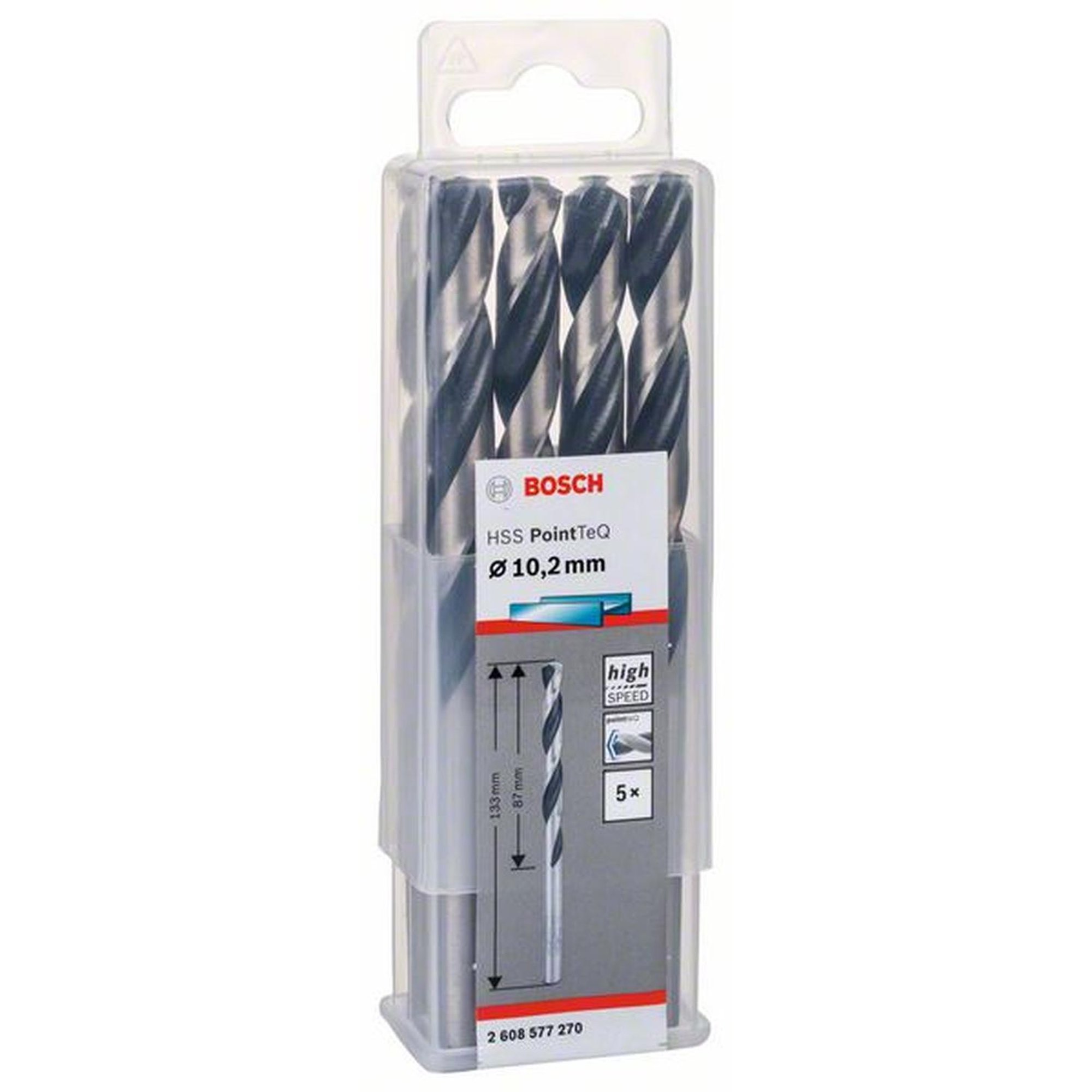 5x Bosch Professional Metallspiralbohrer HSS PointTeQ, DIN 338, Ø 10,2 x 87 mm