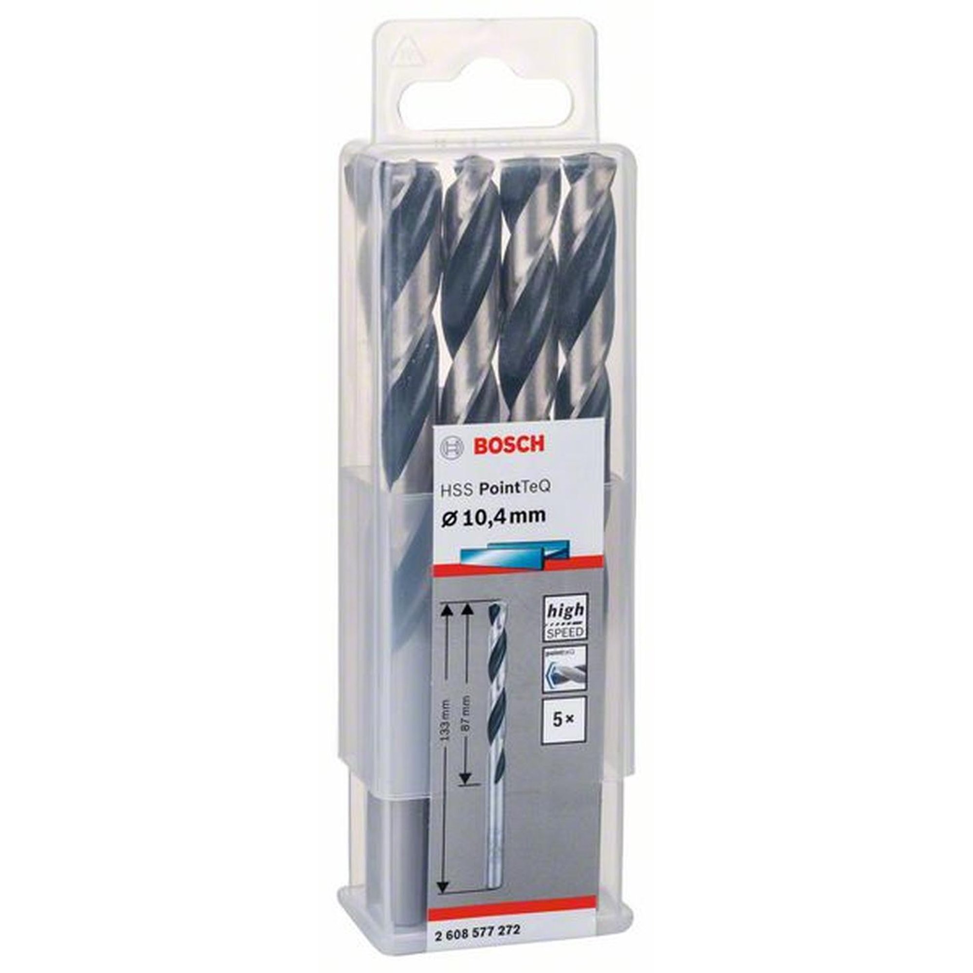 5x Bosch Professional Metallspiralbohrer HSS PointTeQ, DIN 338, Ø 10,4 x 87 mm