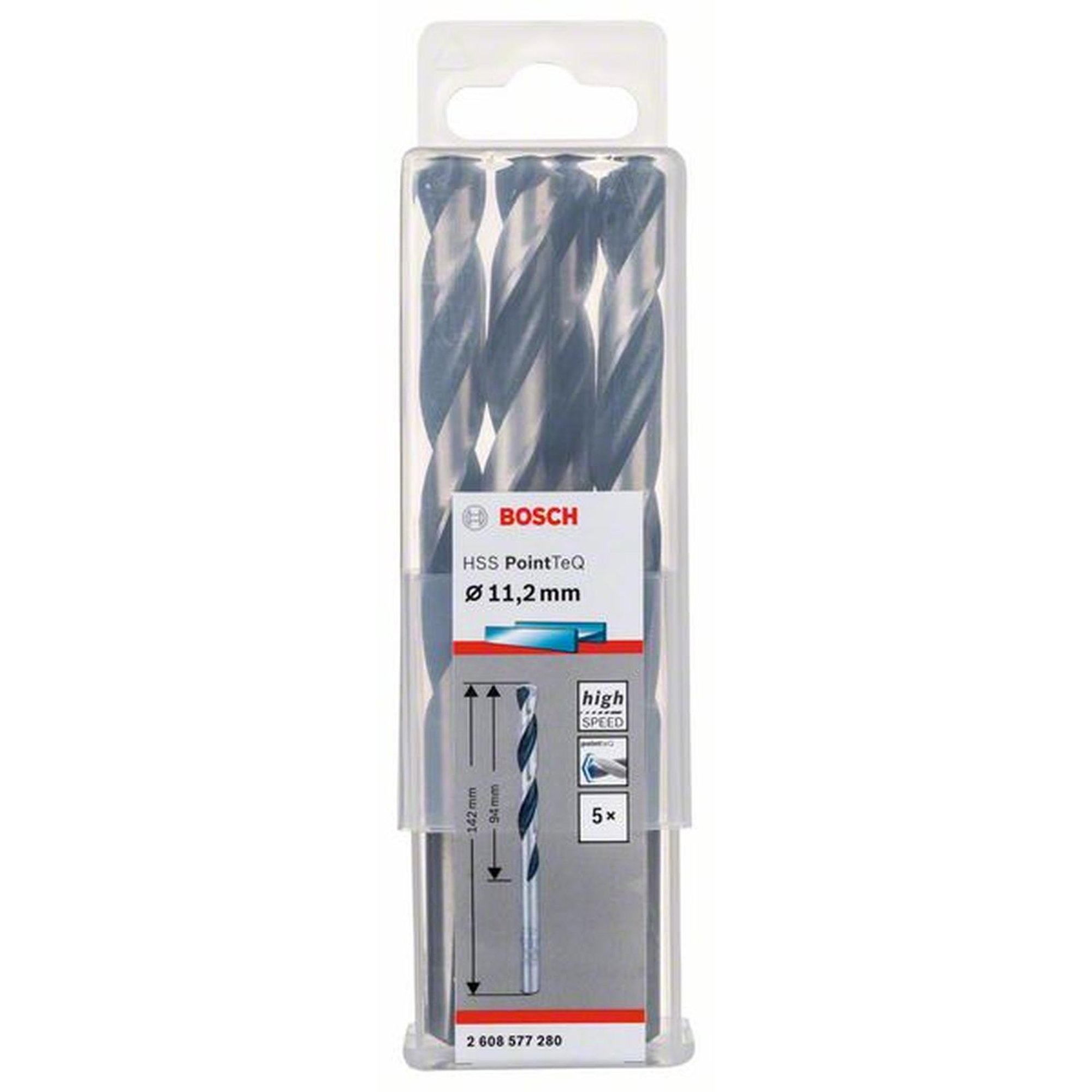 5x Bosch Professional Metallspiralbohrer HSS PointTeQ, DIN 338, Ø 11,2 x 94 mm
