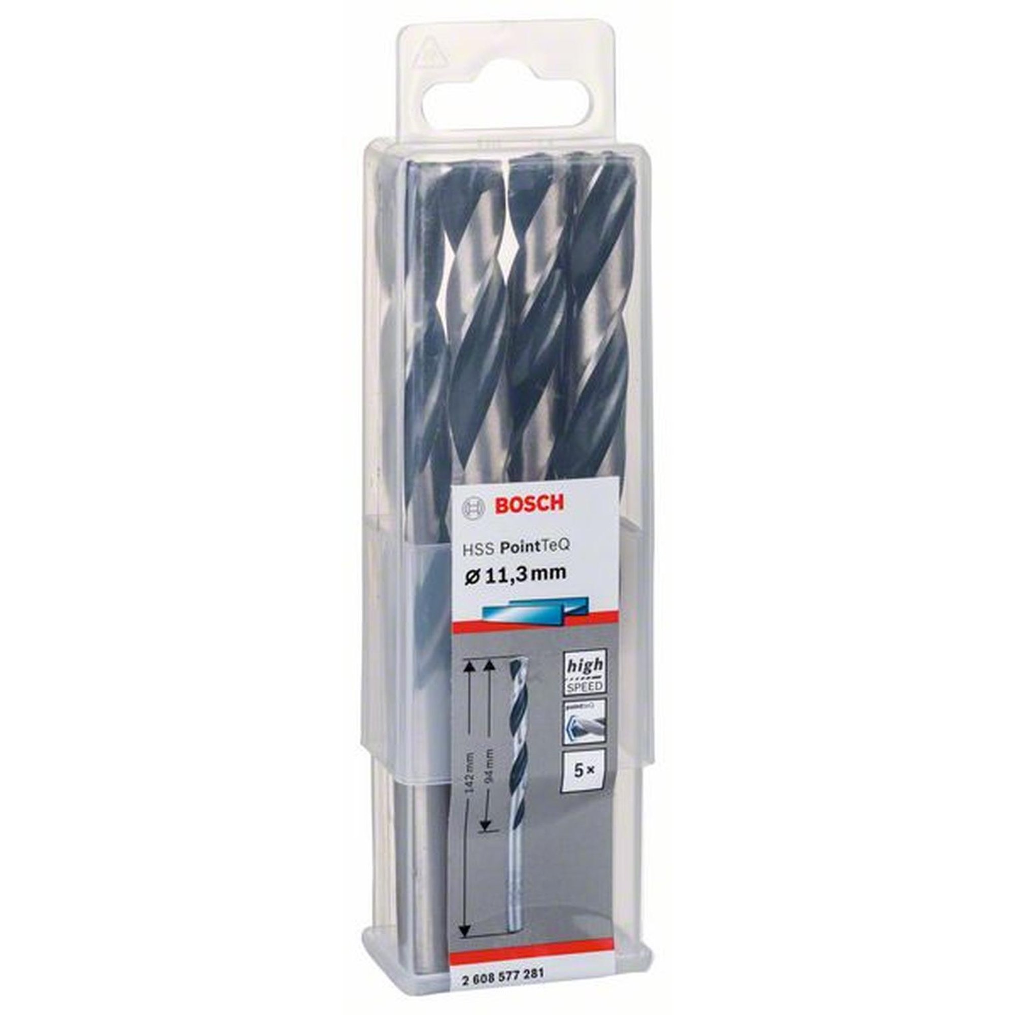 5x Bosch Professional Metallspiralbohrer HSS PointTeQ, DIN 338, Ø 11,3 x 94 mm