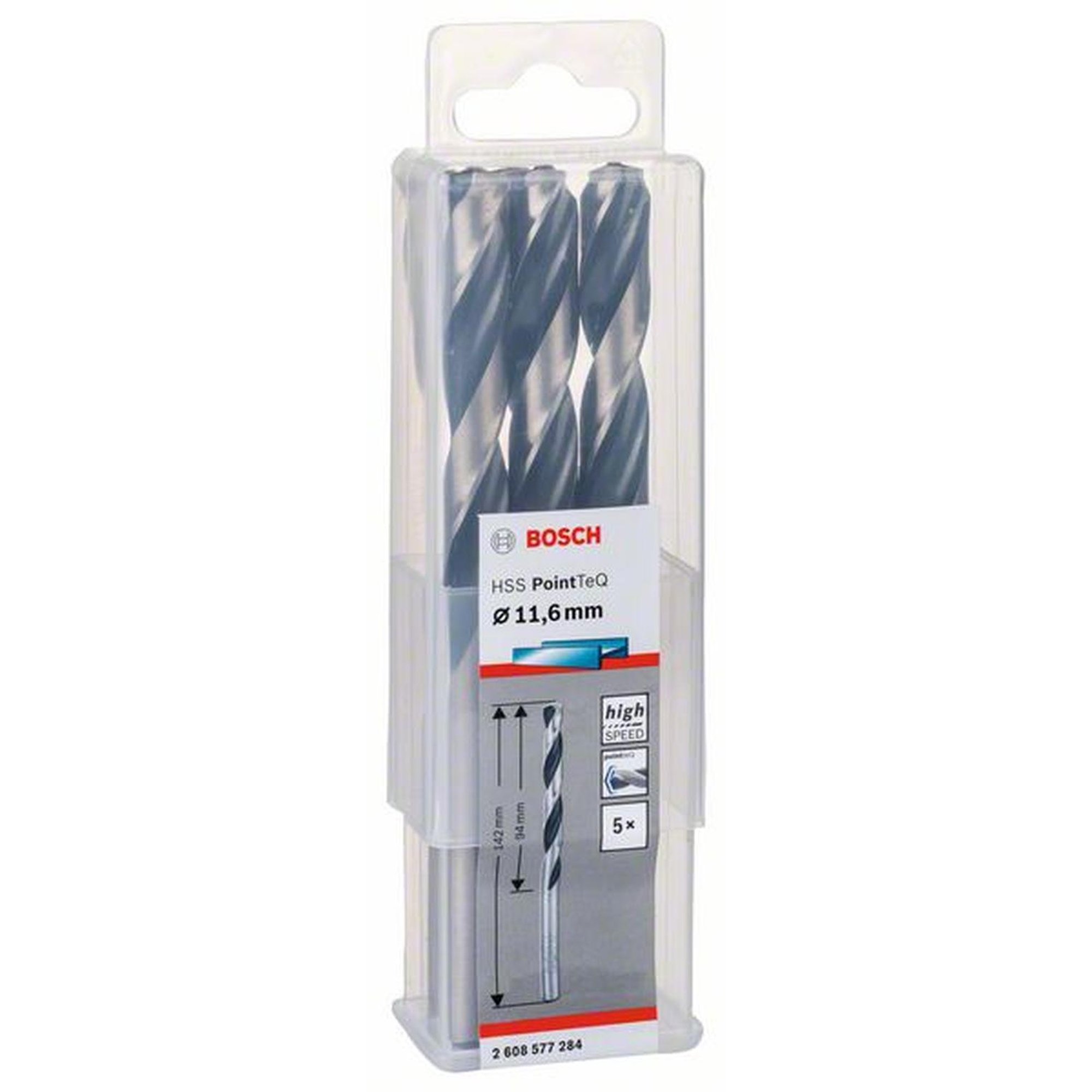 5x Bosch Professional Metallspiralbohrer HSS PointTeQ, DIN 338, Ø 11,6 x 94 mm