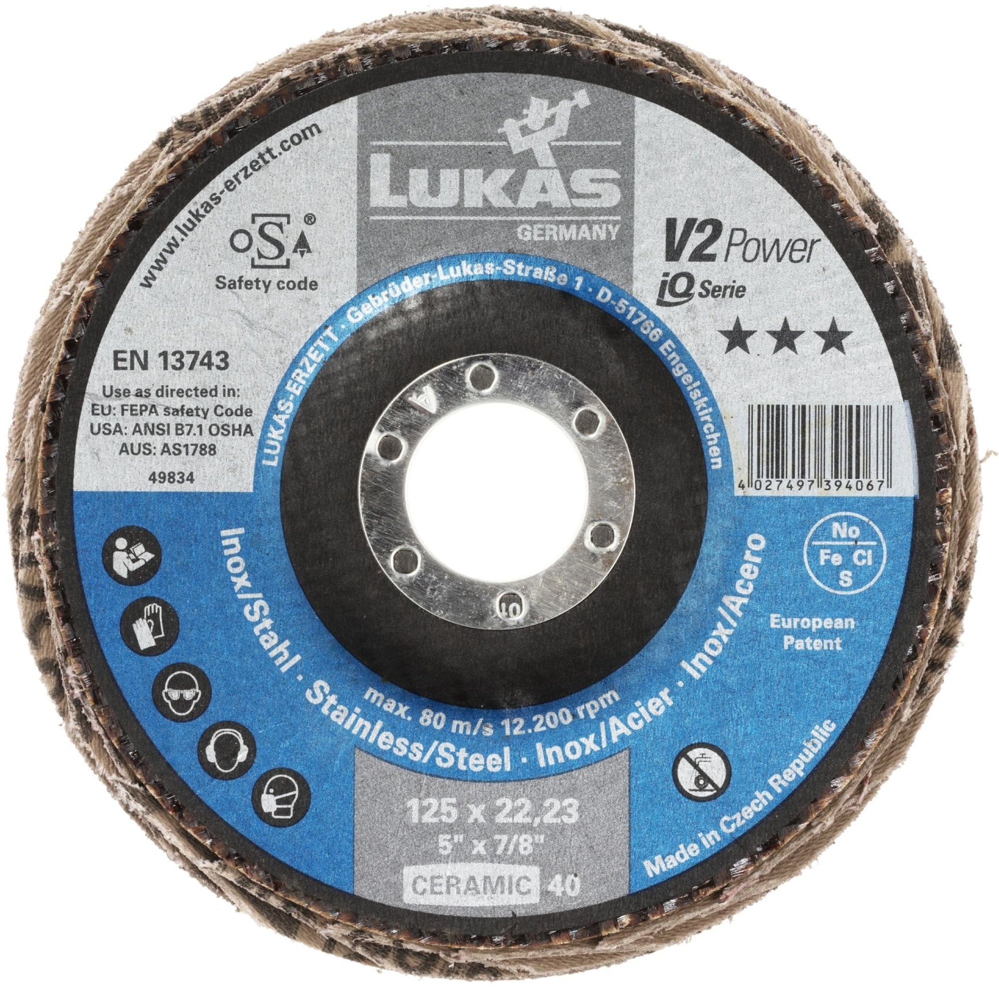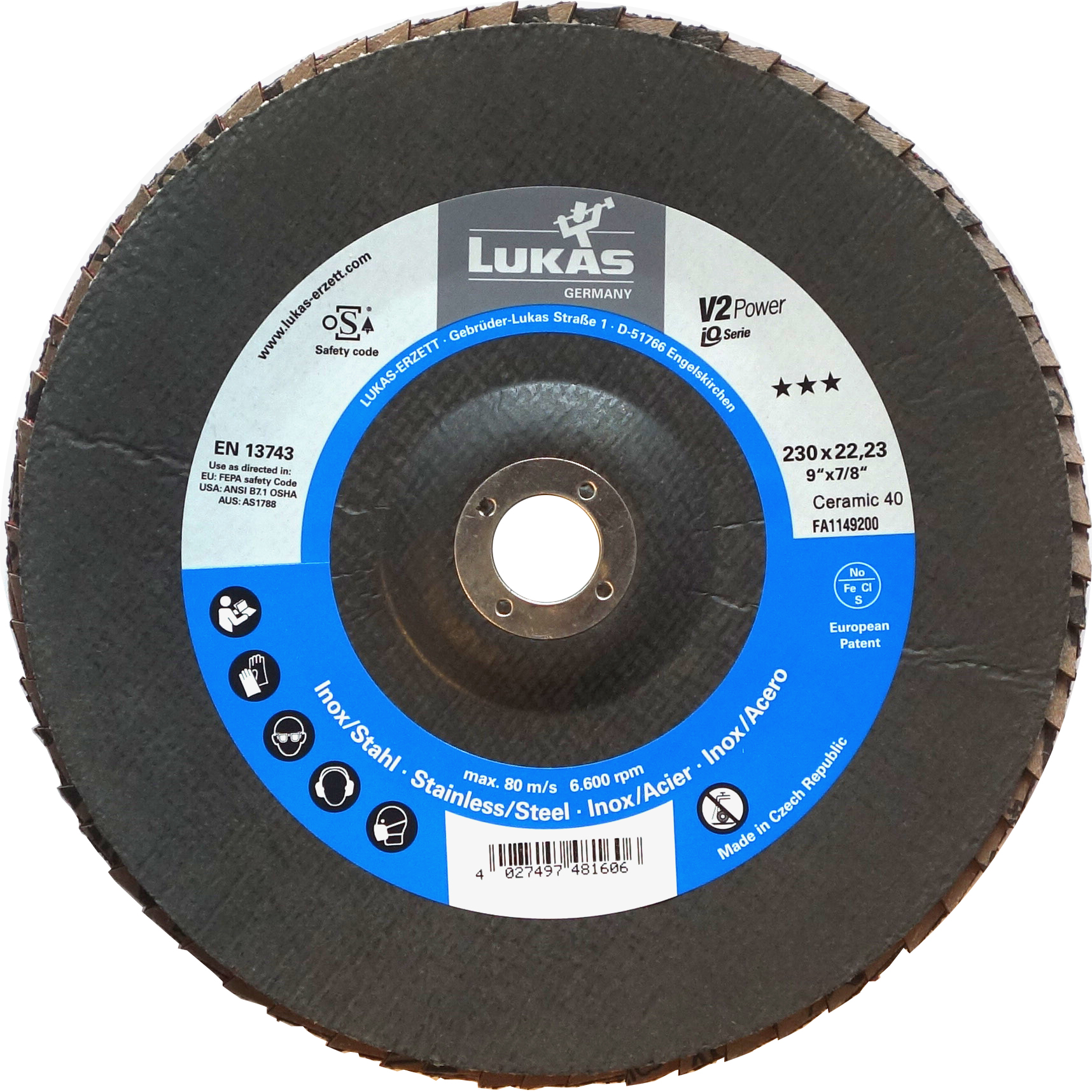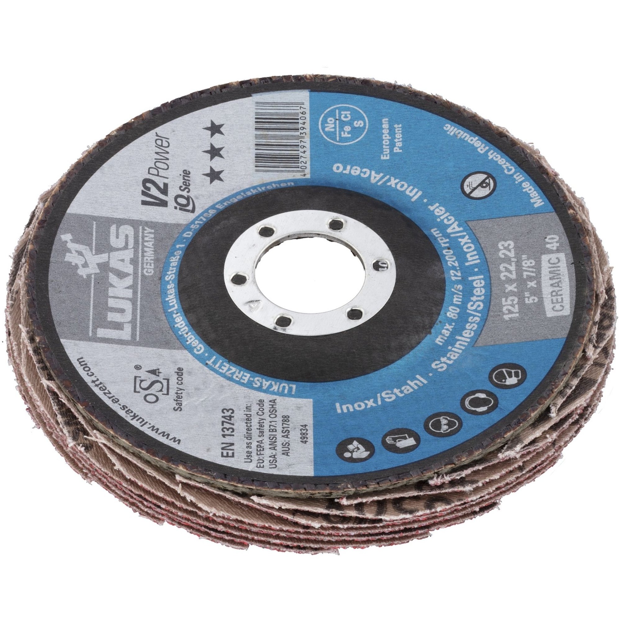 5x LUKAS Fächerscheibe Fächerscheiben Schleifscheibe V2 Power Ø 230 mm Korn 40