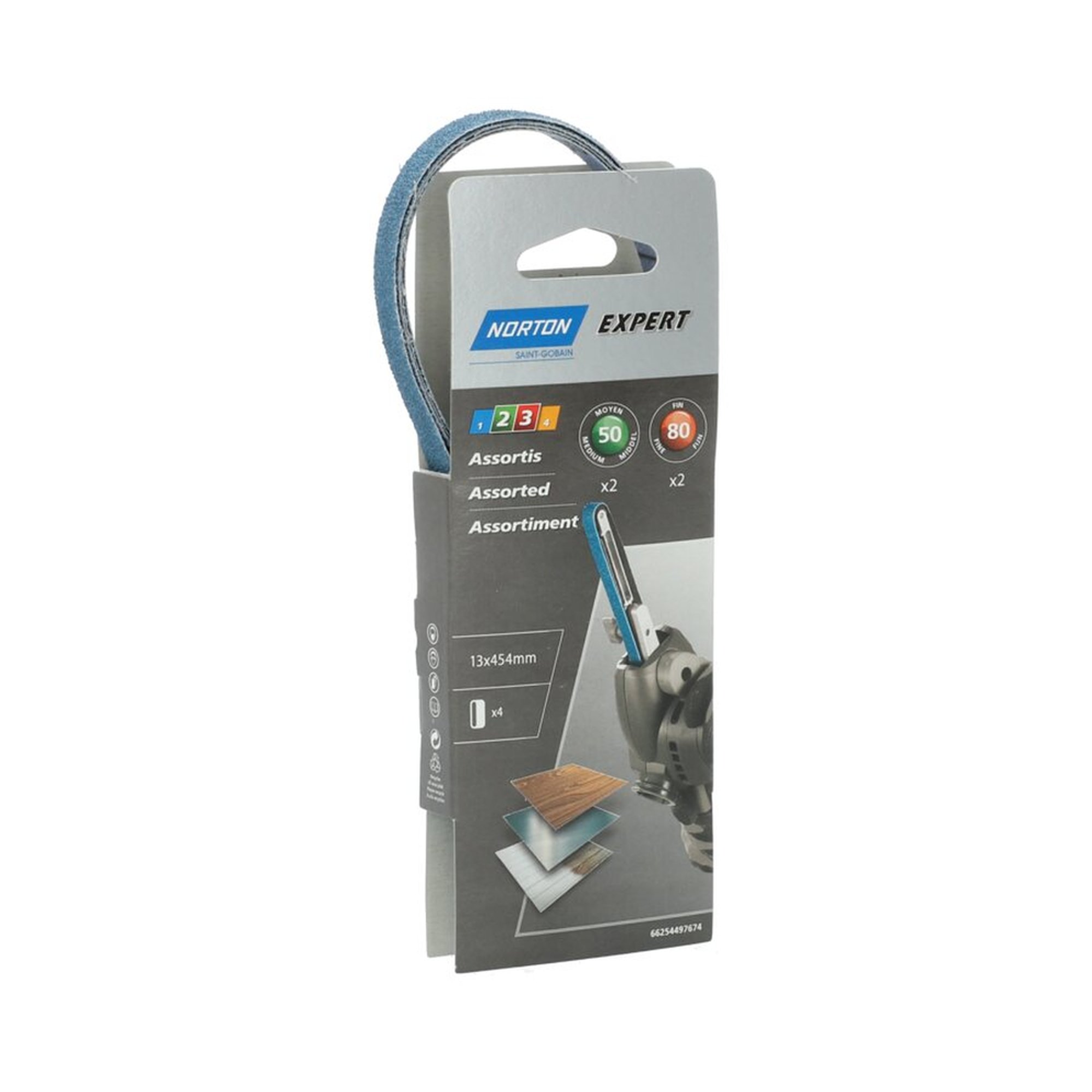 Entdecken Sie unsere leistungsstarken 13x454mm Feilenbänder von Norton EXPERT, ideal für DIY-Heimwerker. Effektiv für diverse Materialien und Schleifphasen.,