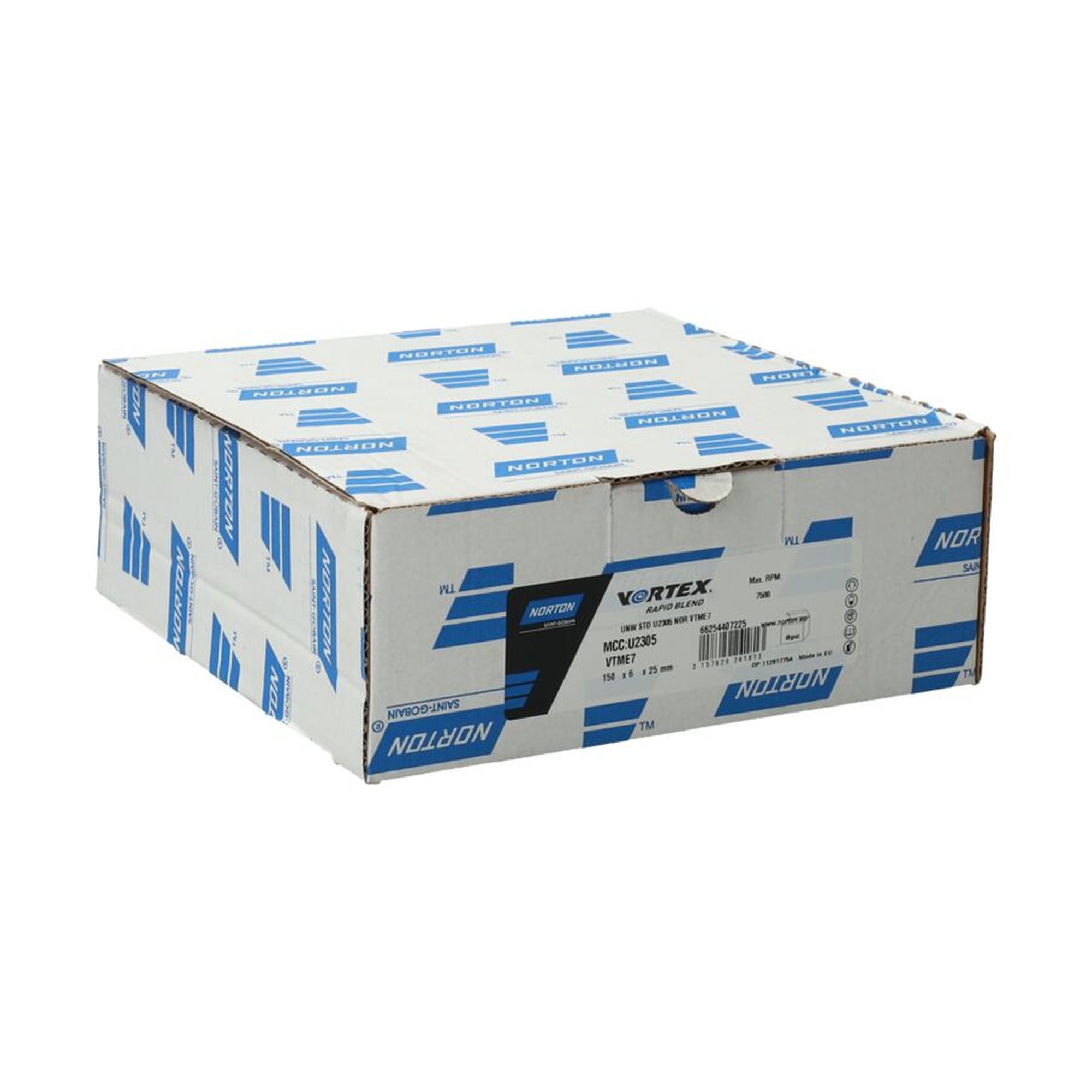 Die Norton VORTEX Kompaktscheibe mit den Maßen 152.4x6.35x25.4mm und der Farbe Blau ist ein hochleistungsfähiges Schleifwerkzeug zur Bearbeitung von Metallen wie Edelstahl und Stahl. Diese Scheibe zeichnet sich durch den Einsatz von Vortex-Aluminiumoxid-Schleifkorn aus, das für einen aggressiven Abtrag und schnelle Ergebnisse sorgt, was insbesondere das Entfernen von leichten Schweißwülsten und Schweißspritzern effektiv unterstützt.