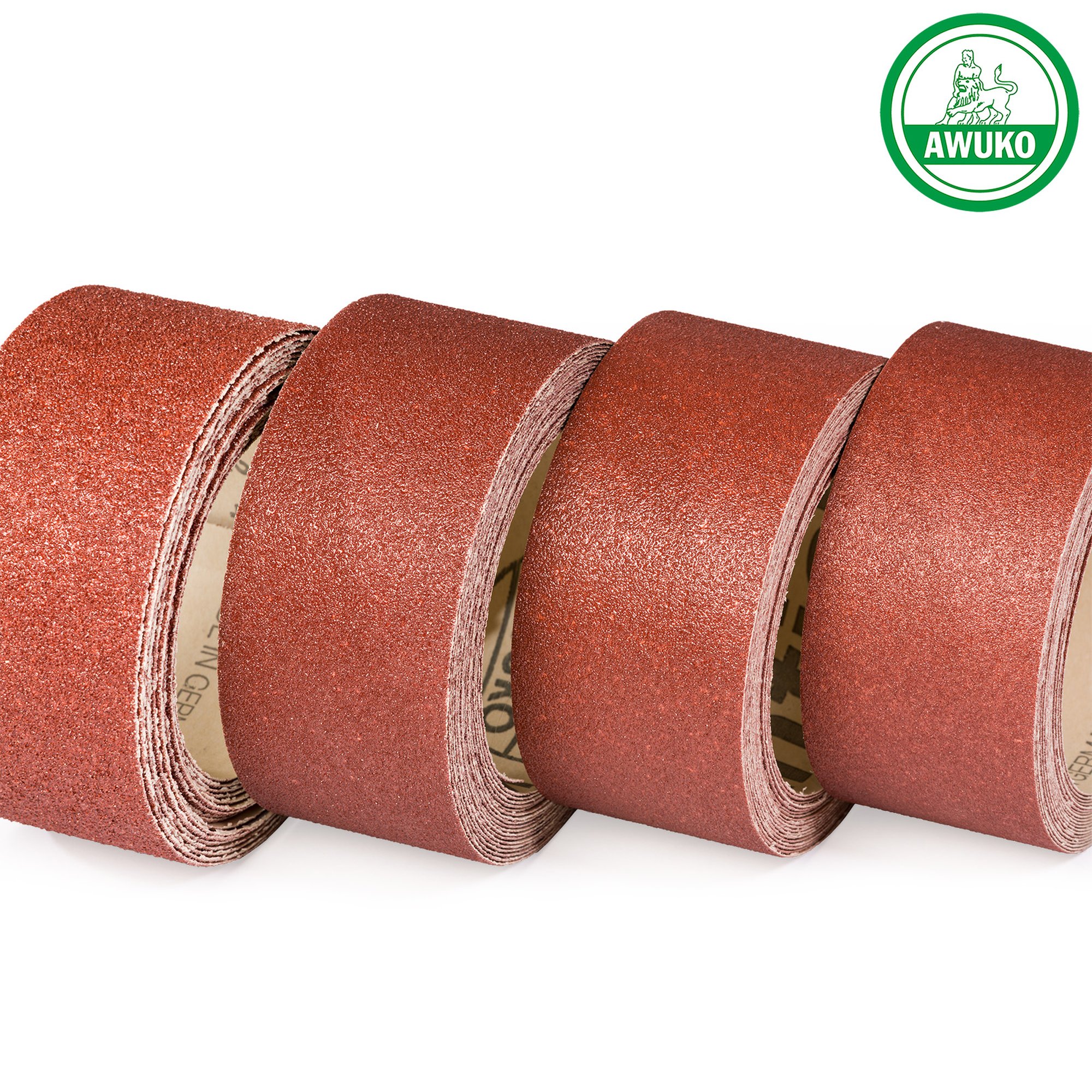 Awuko Schleifrollen-Set Schleifpapier Set für HOLZ | 4 Rollen a' 100 mm x 5 m | Korn 40 / 60 / 80 / 120