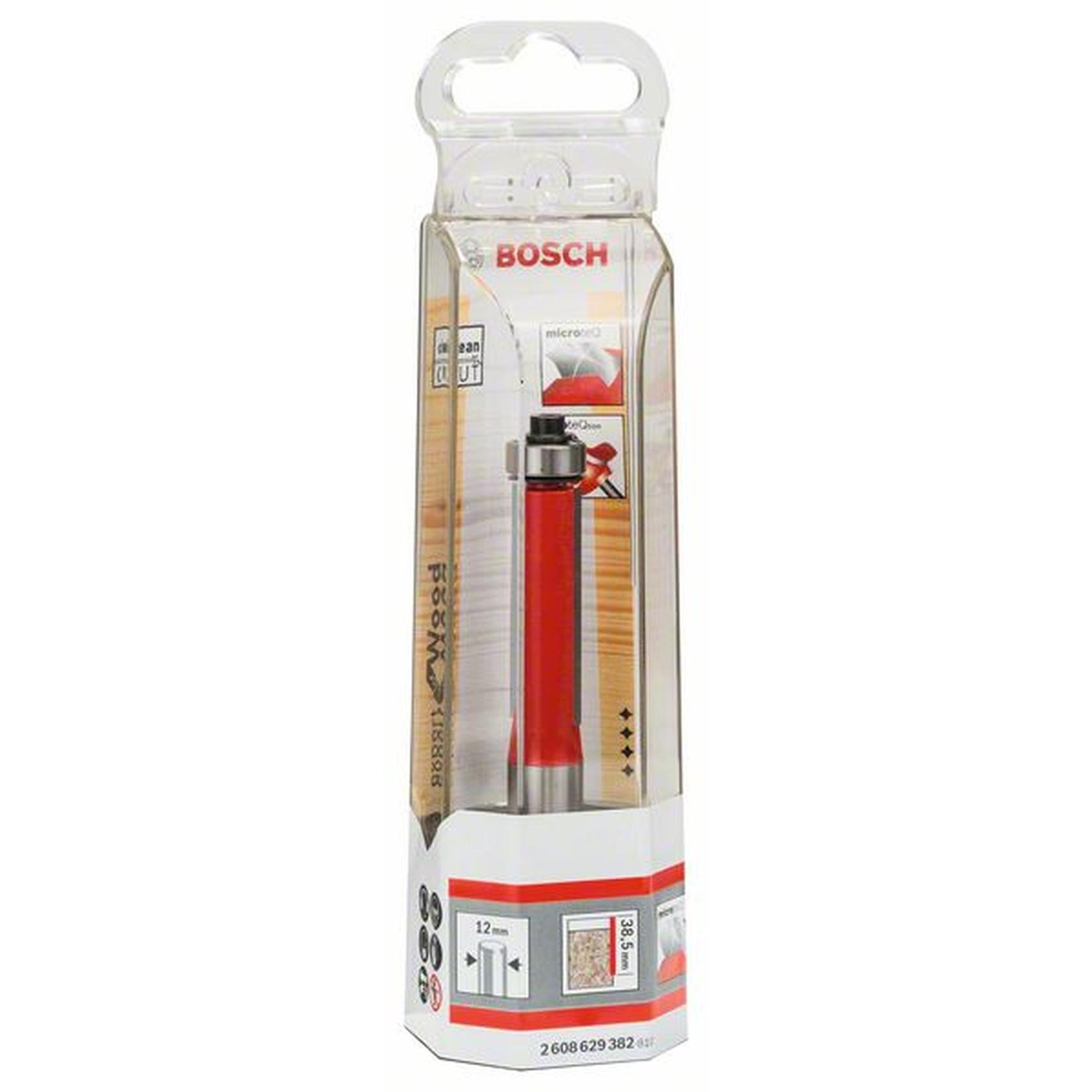 Besonderheiten: Der BOSCH Bündigfräser Expert for Wood Laminate ist ein leistungsstarker Fräser mit einem Durchmesser von 12 mm und einer Arbeitslänge von 38,5 mm. Er wurde speziell für das splitterfreie bündige Fräsen entwickelt