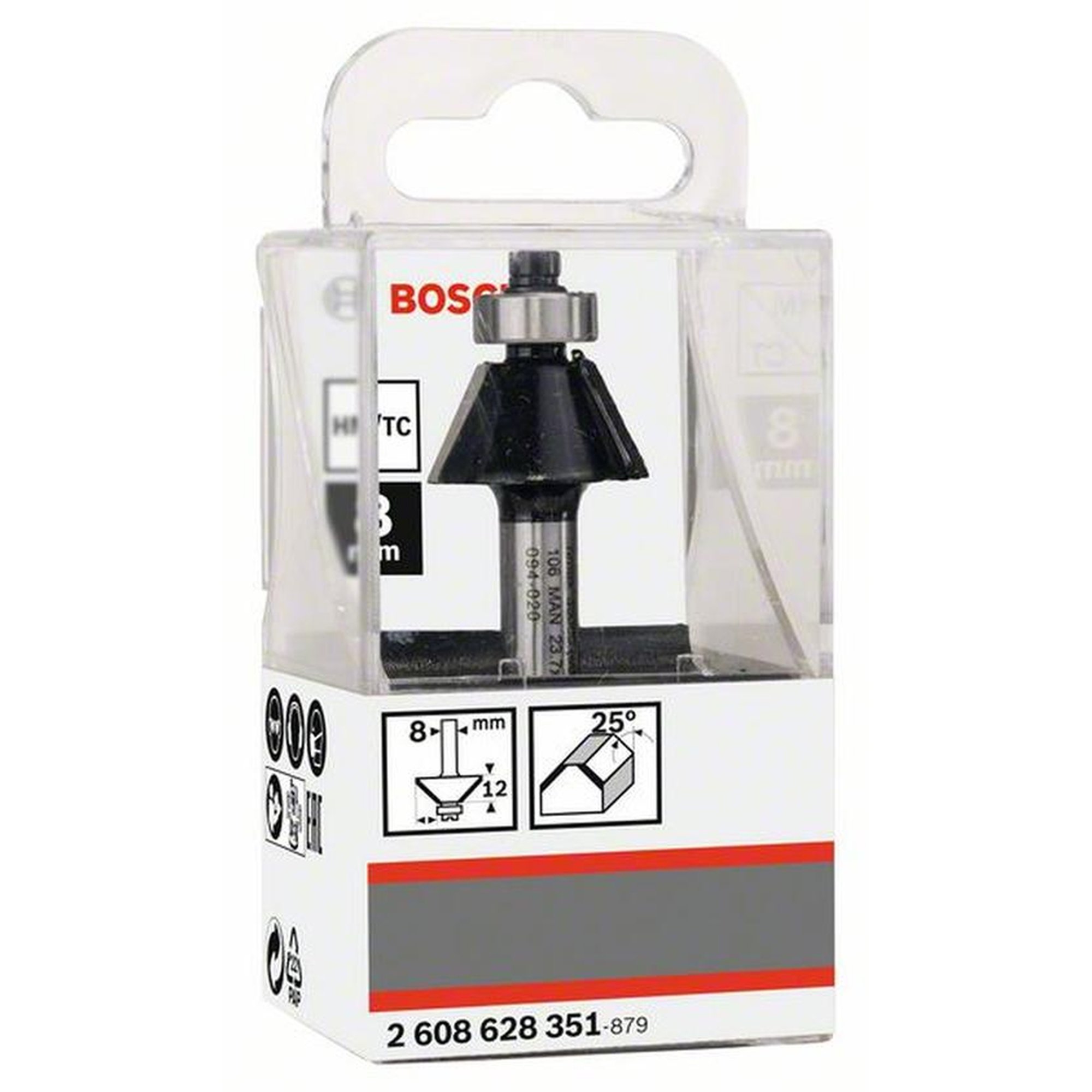 Der BOSCH Bündigfräser für Holz und Laminat ist ein hochwertiges Werkzeug, das eine hohe Schneidleistung für konsistentes Anschrägen ermöglicht. Mit einem 25-Grad-Winkel und hochwertigen Schneiden aus Wolframcarbid ist dieser Fräser besonders langlebig und zuverlässig im Schneiden. Durch das spezielle Design des Fräsers wird die Spangröße begrenzt und ein Rückschlag vermieden.