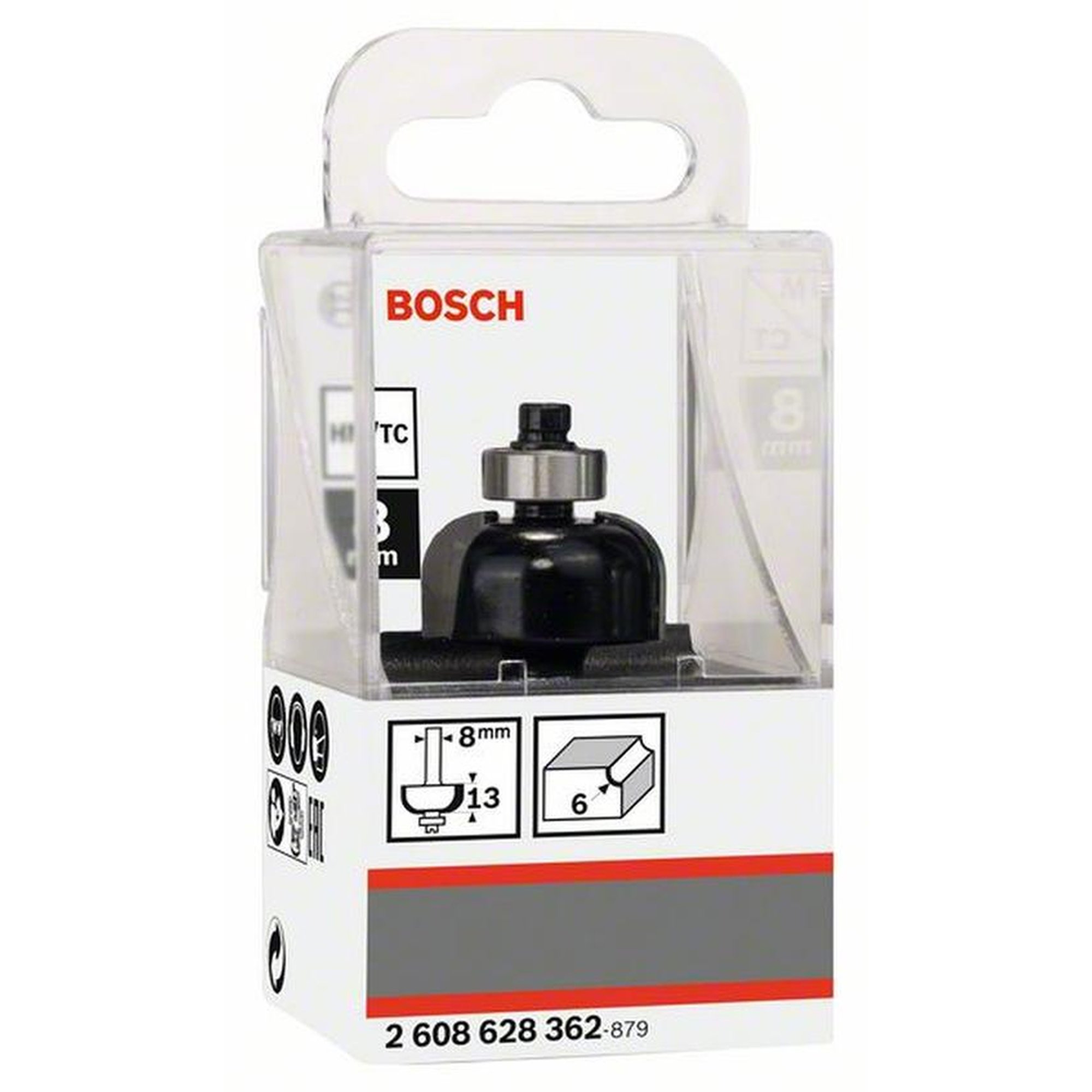 BOSCH Hohlkehlfräser für Holz, 8 mm, R1 6 mm, Ø 24,7 mm, L 12,7 mm