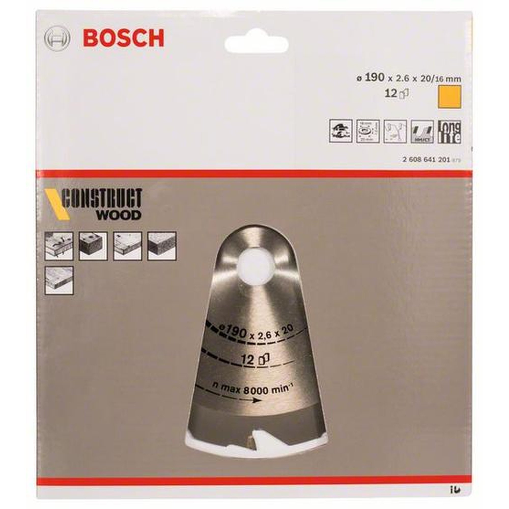 Besonderheiten: Das BOSCH Construct Wood Kreissägeblatt mit einem Durchmesser von 190 mm und 12 Zähnen ist speziell für das präzise Schneiden von Bauholz mit Nägeln und Betonrückständen entwickelt worden