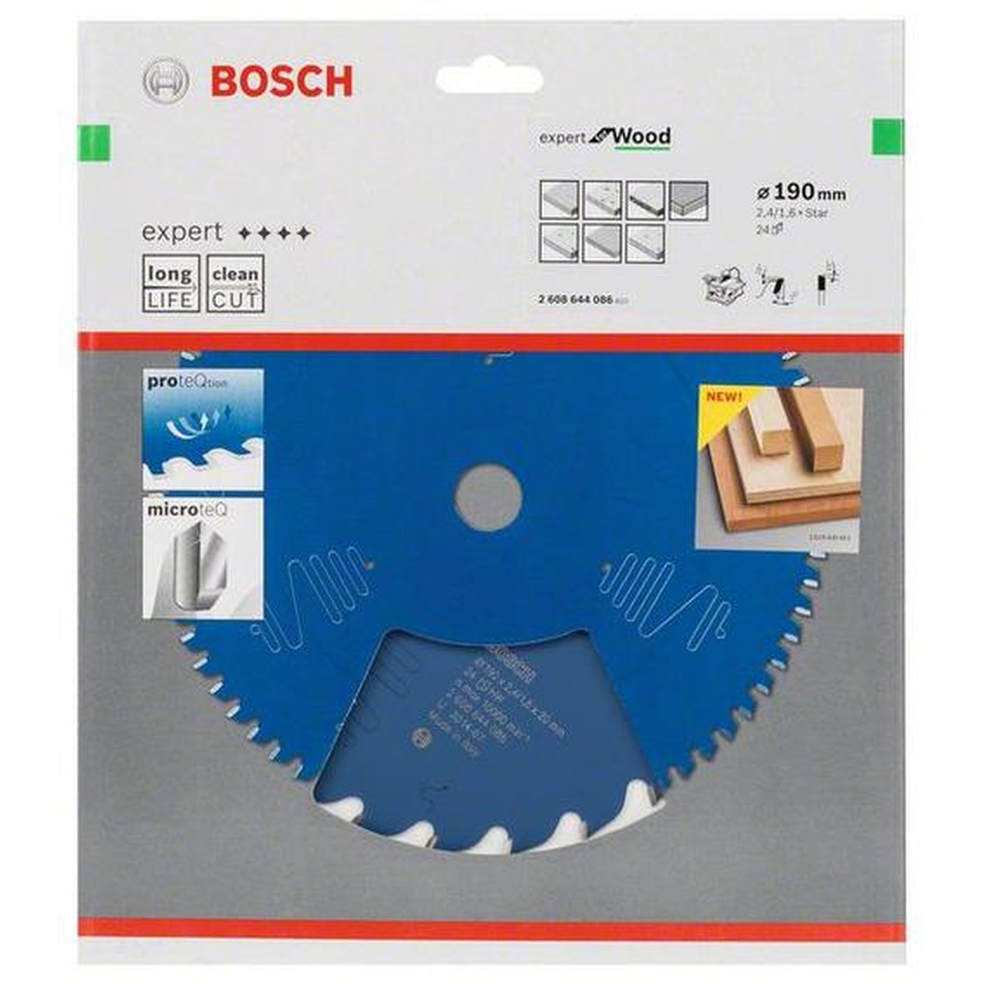 Eigenschaften: Das BOSCH Kreissägeblatt Expert for Holz ist ein universelles und hochwertiges Werkzeug. Mit einem Durchmesser von 190 mm und 24 Zähnen eignet es sich perfekt für verschiedene Sägen. Dank der Microteq-Zähne aus extra-harten Carbide