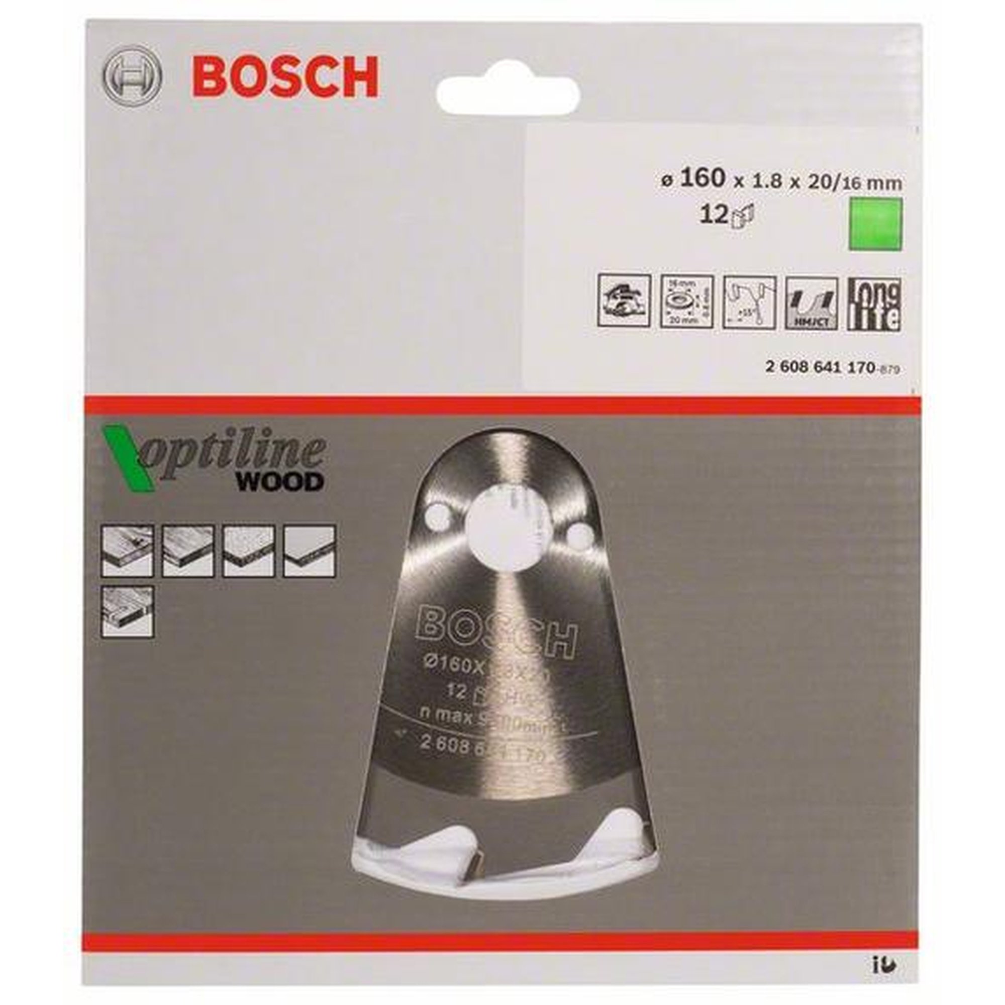 BOSCH Kreissägeblatt Optiline Holz für Handkreissägen, Ø 160 mm, 12 Zähne