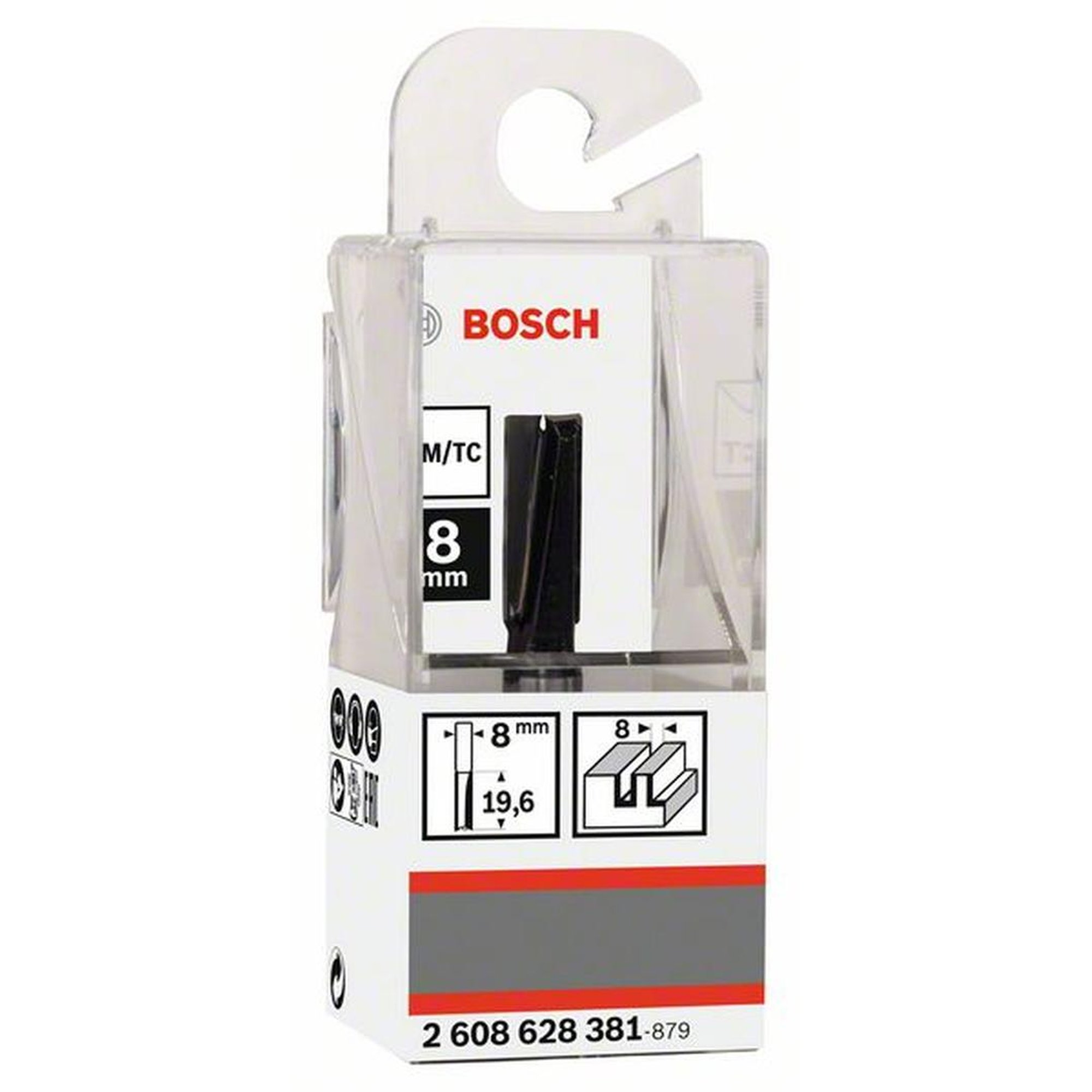 Merkmale: Der BOSCH Nutfräser für Holz ist ein vielseitiges Werkzeug für allgemeine Fräsarbeiten. Mit einem Durchmesser von 8 mm und einer Arbeitslänge von 19,6 mm bietet er präzises und zuverlässiges Schneiden