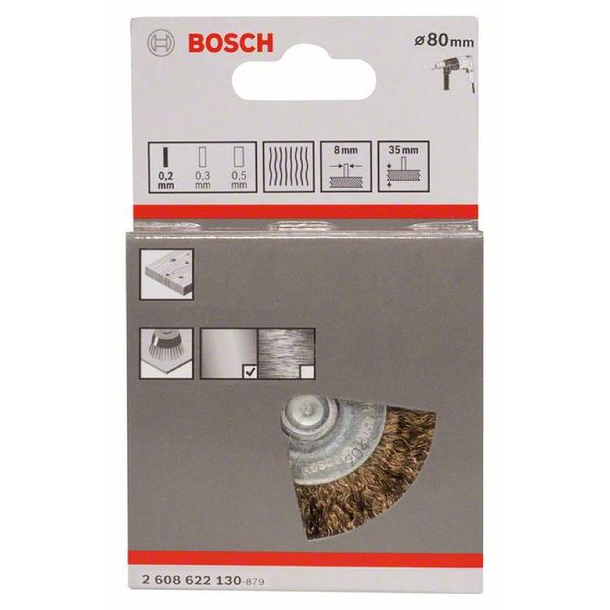Die BOSCH Scheibenbürste hat einen Durchmesser von 80 mm und eine Drahtstärke von 0,20 mm. Sie erreicht eine maximale Drehzahl von 4.500 U/min und hat eine Bürstenbreite von 35 mm. Die Befestigung erfolgt über einen Spannschaft. Der gewellte Draht ist vermessingt und sorgt für eine effektive Reinigung und Oberflächenbearbeitung.