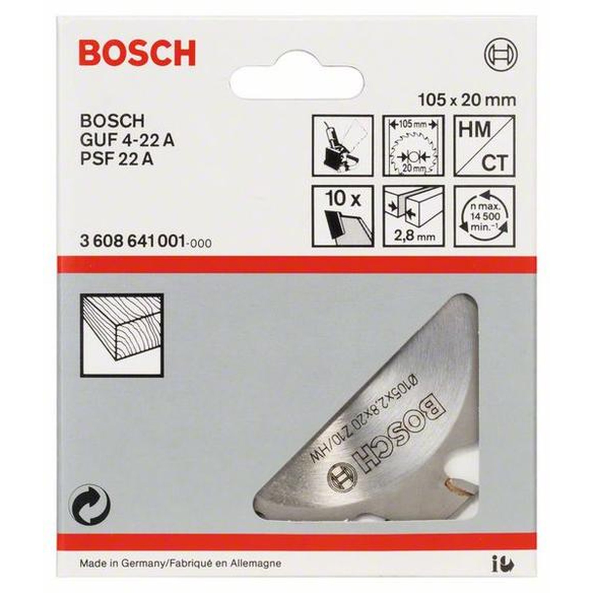 BOSCH Scheibenfräser für Holz, Ø 105 mm, 10 Zähne, 20 mm, 2,8 mm