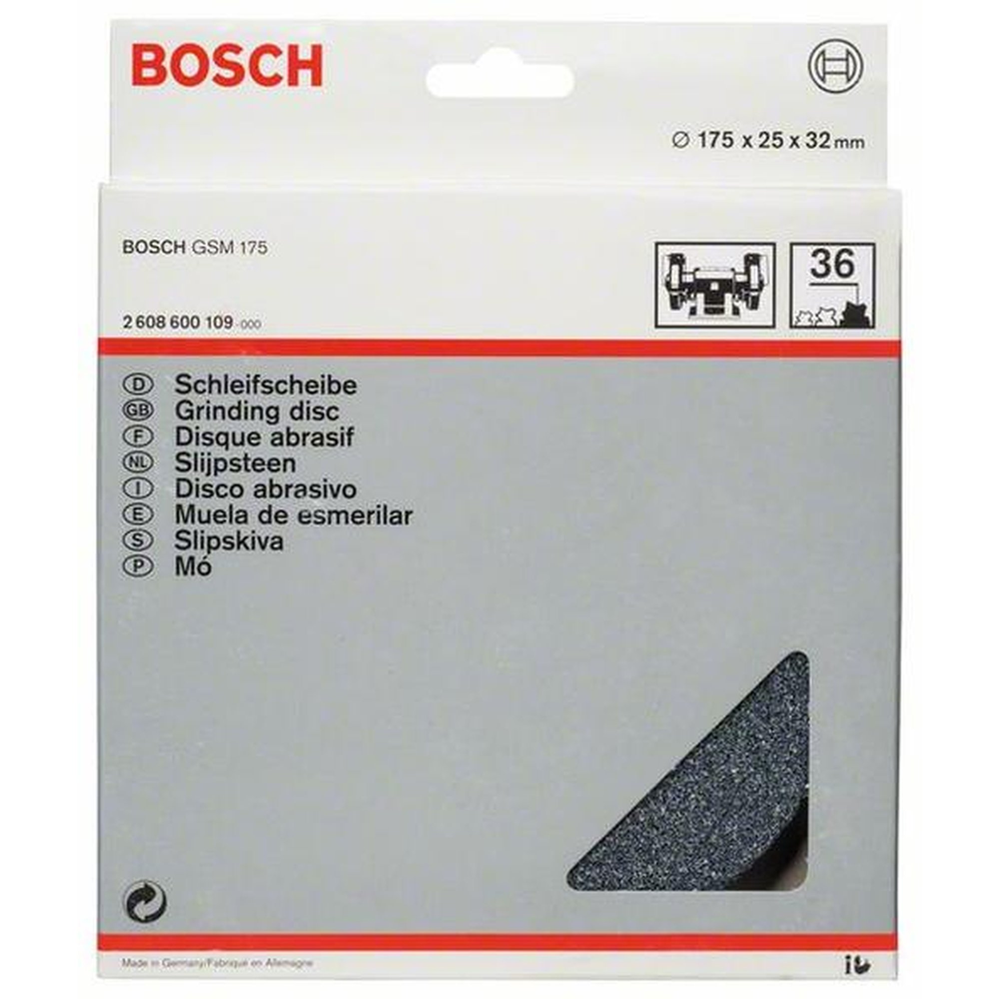 BOSCH Schleifscheibe für Doppelschleifmaschine, Ø 175, K: 36