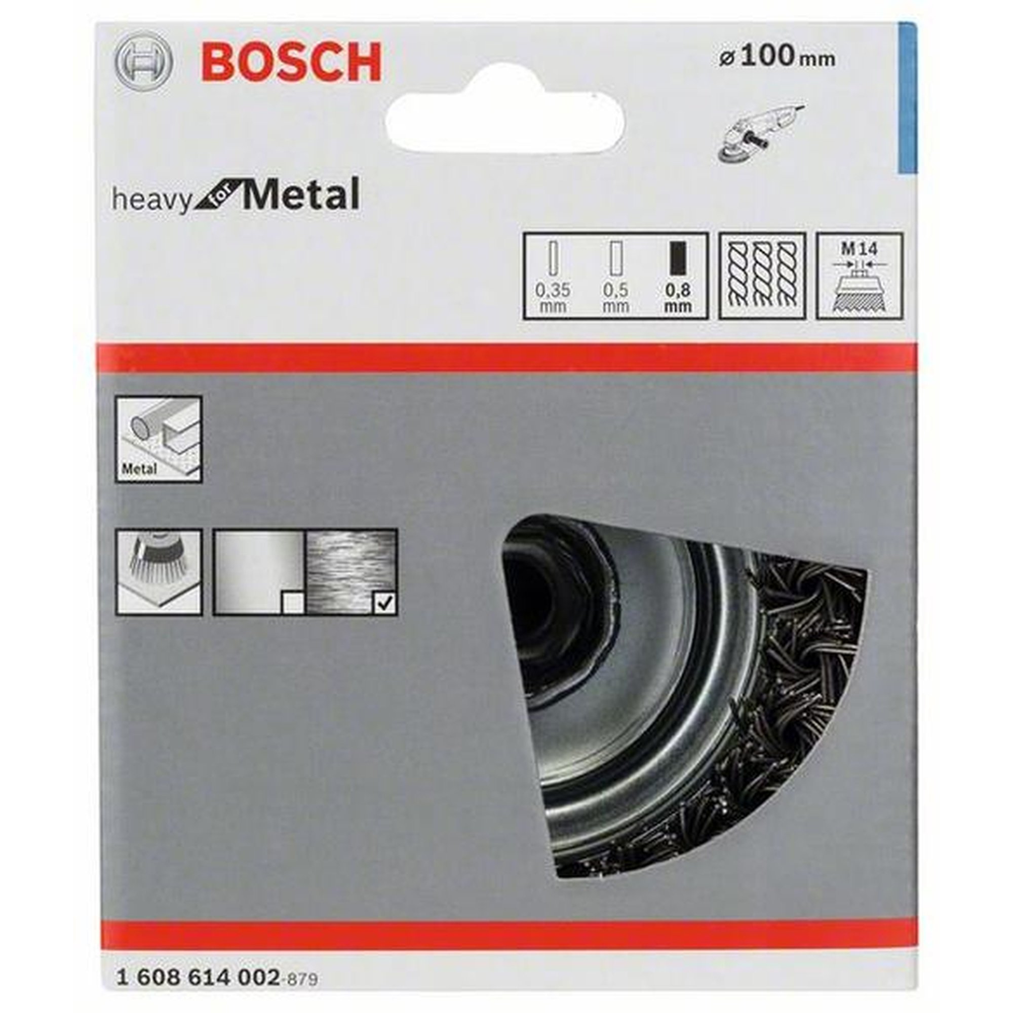 Drahtbüsten werden in verschiedenen Stärken angeboten, um unterschiedliche Schleifgrade zu erreichen. Die BOSCH Topfbürste Heavy for Metal ist mit einem Draht von 0,80 mm Stärke ausgestattet, der für ein besonders grobes Oberflächenfinish sorgt.