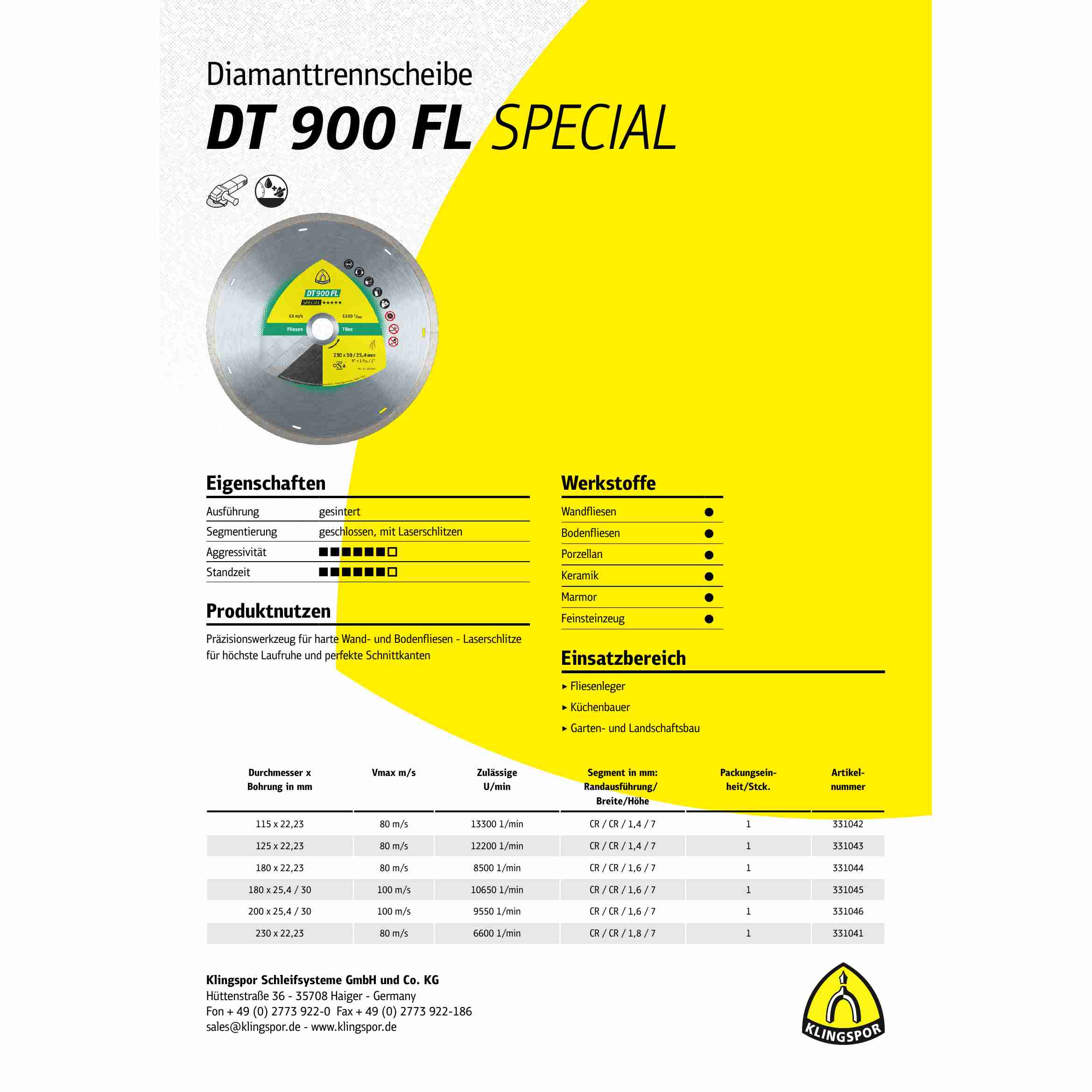 Insgesamt ist die Klingspor DT 900 FL Diamanttrennscheibe eine ausgezeichnete Wahl für jeden Handwerker, der eine zuverlässige und langlebige Trennscheibe benötigt. Mit ihrer aggressiven Leistung und präzisen Schneidfähigkeit ist sie ideal für das Schneiden von harten Fliesen und anderen Materialien geeignet. Die Trennscheibe bietet eine lange Standzeit im harten Dauereinsatz und ist von erstklassiger Klingspor Markenqualität.