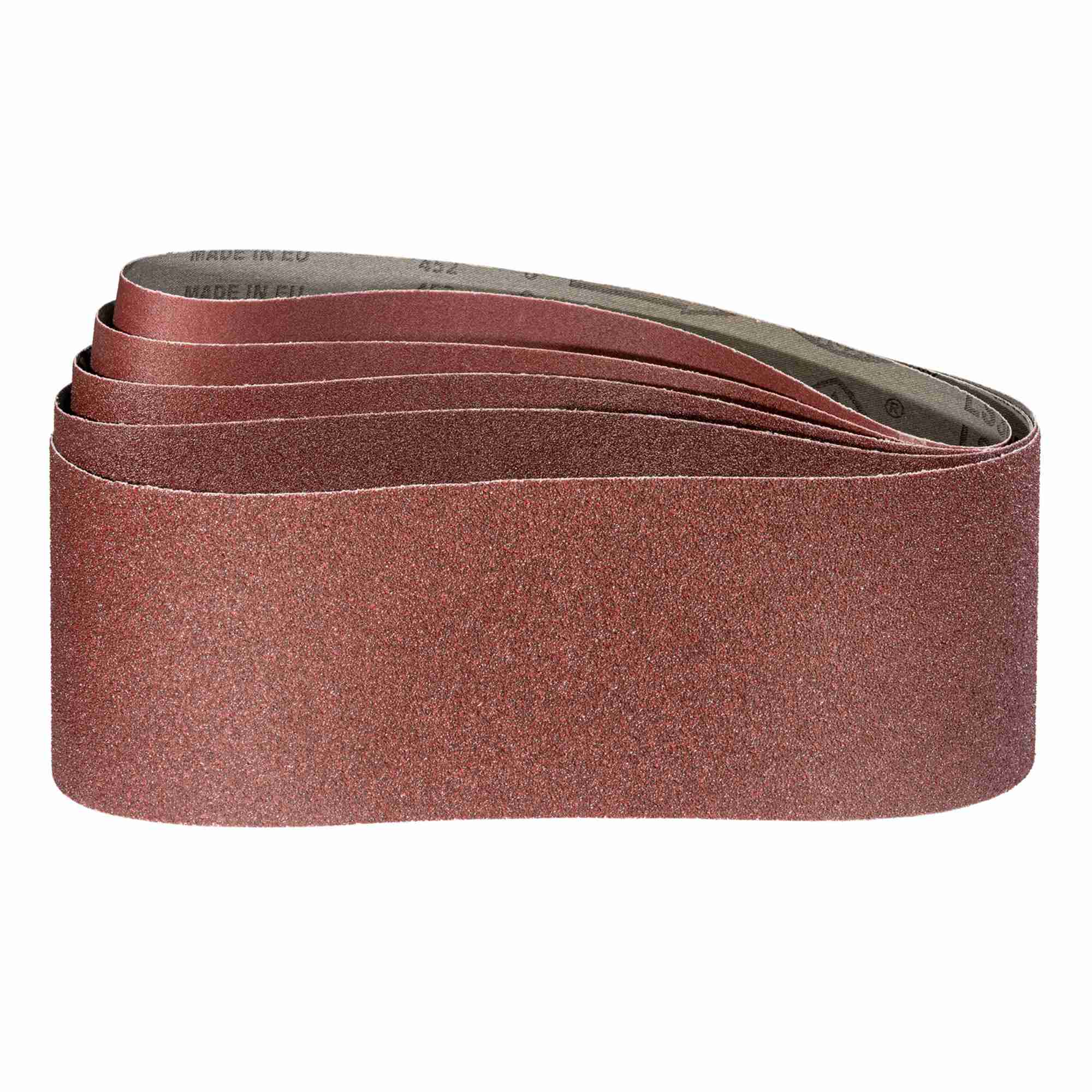 Profi Schleifband-Set in Industriequalität | 120 x 820 mm je 1x Korn 40/60/80/120/180 (5 Stück) | Made in EU | Korund Universal-Schleifbänder für Holz, Metall, Stein, Kunststoff, Farbe/Lack/Spachtel.