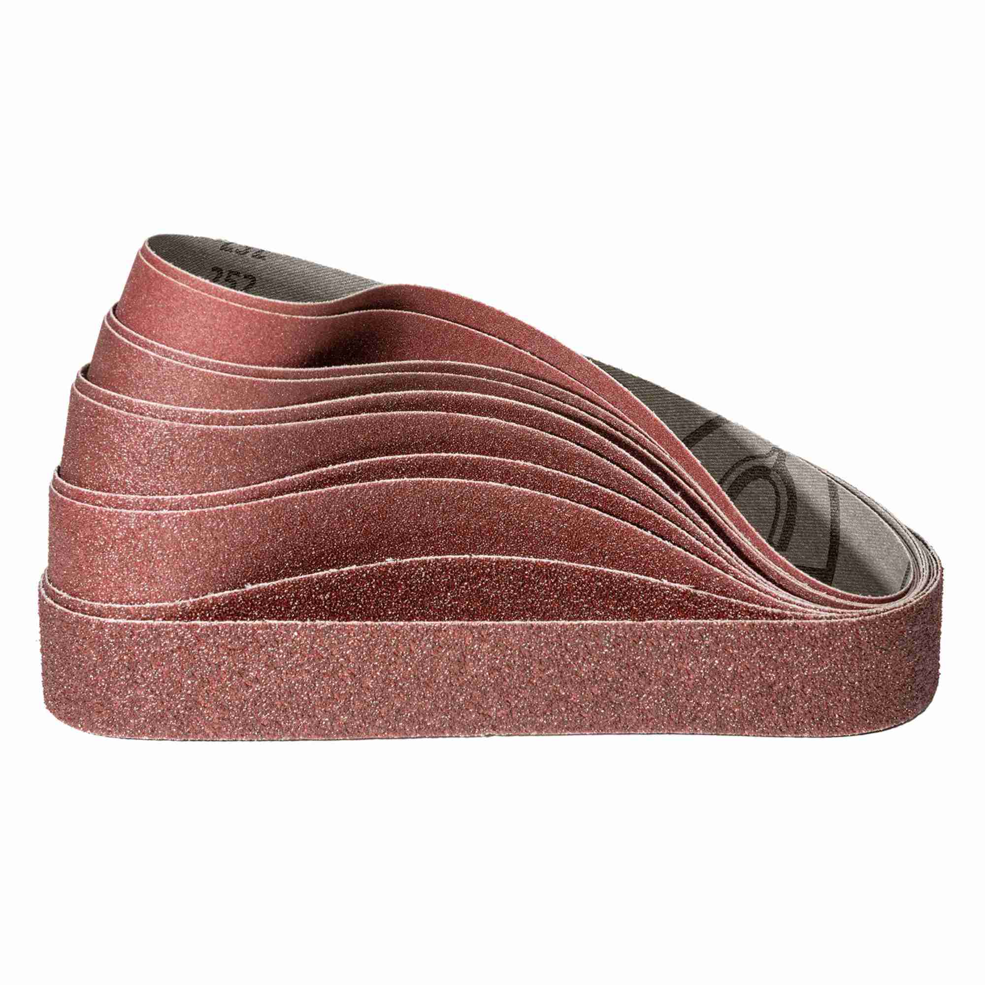 Profi Schleifband-Set in Industriequalität | 30 x 533 mm je 2x Korn 40/60/80/120/180 (10 Stück) | Made in EU | Korund Universal-Schleifbänder für Holz, Metall, Stein, Kunststoff, Farbe/Lack/Spachtel.