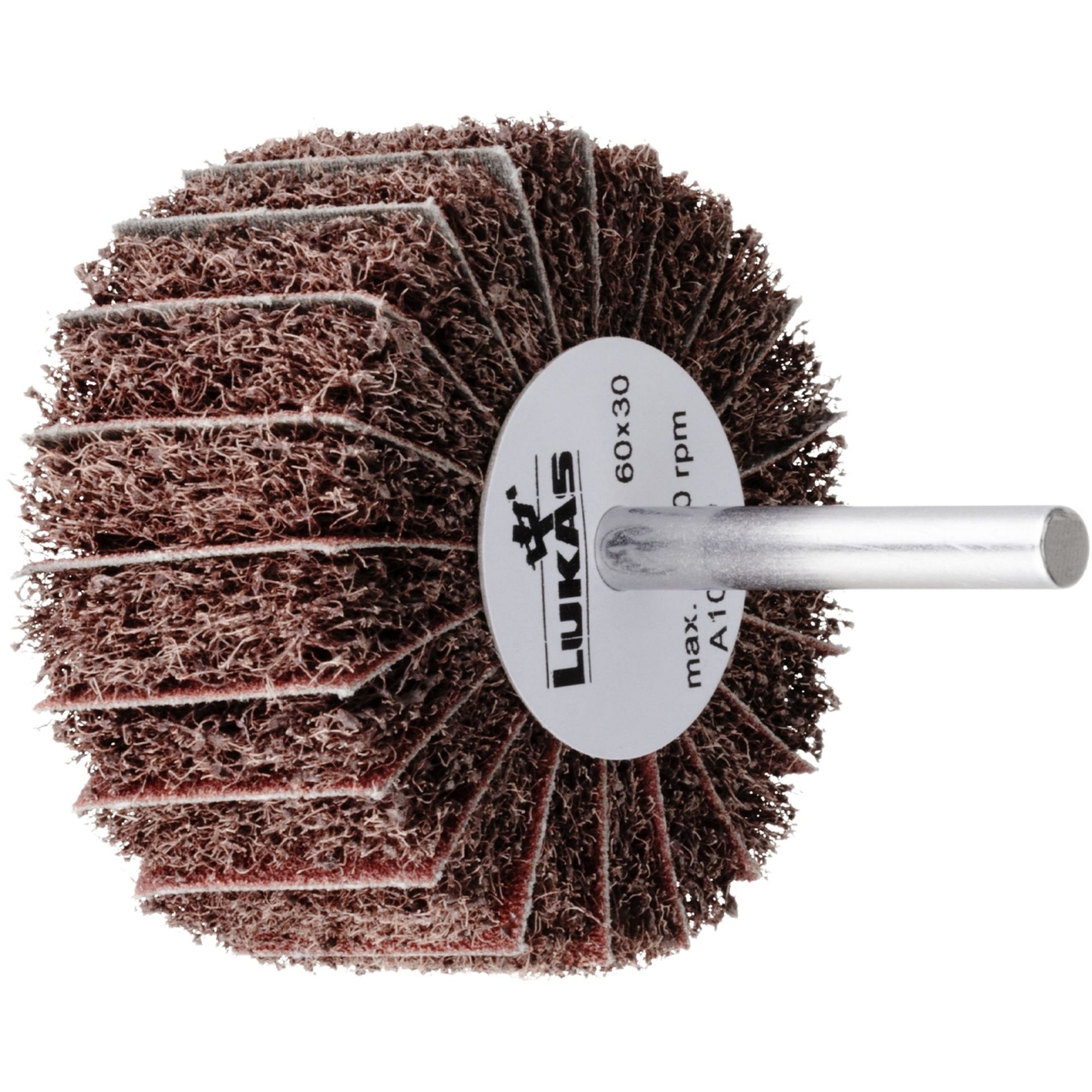 Eigenschaften: Die LUKAS Fächerschleifer Schleifmop Schleifstift SFM 40x20mm Korn 106/150 ist eine Kombination aus Schleifvlies und -Leinen und bietet einen hohen Abtrag beim Flächenschleifen