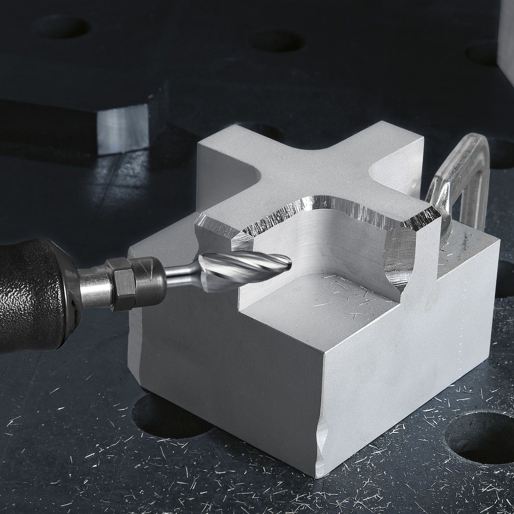 Besonderheiten: Hochwertiges Werkzeug für die Bearbeitung von weichen Aluminiumsorten und -legierungen. Mit LightFlow-Beschichtung und messerscharfen Schneiden erzeugt der Fräser ein beeindruckendes Spanvolumen