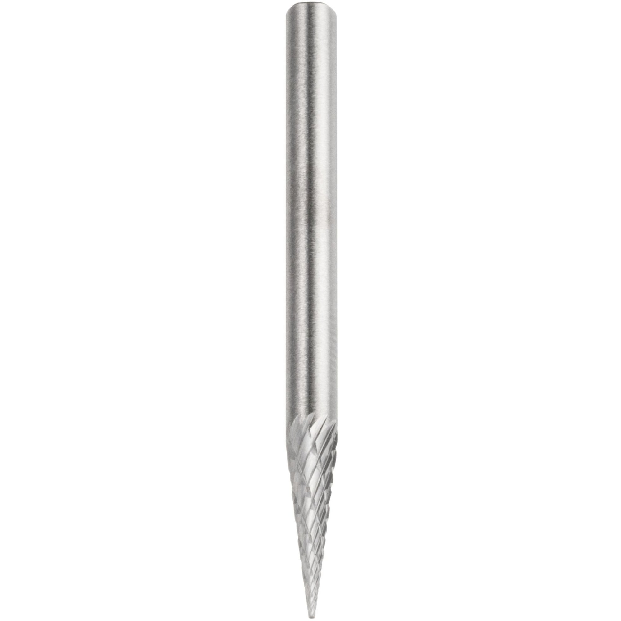 Dank seiner Spitzkegelform ermöglicht der Fräser präzises Arbeiten und eine hohe Abtragsleistung. Sie können damit sowohl feine Konturen fräsen als auch größere Flächen bearbeiten. Durch die universelle Einsetzbarkeit des Werkzeugs sparen Sie Zeit und Geld, da Sie nicht für jedes Material ein spezielles Werkzeug benötigen.