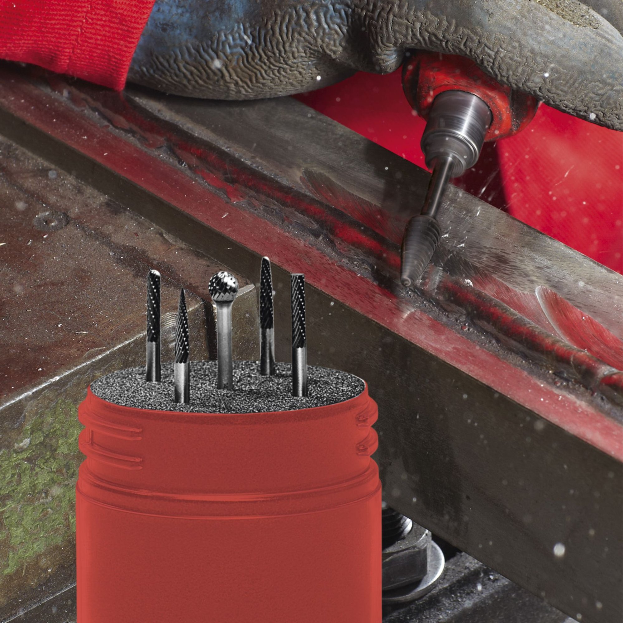 Merkmale: Das LUKAS Fräser-Set F5, die Allrounder unter den Frässtiften, besteht aus fünf hochwertigen Werkzeugen mit einem 3mm Stahlschaft und einer Verzahnung ZX