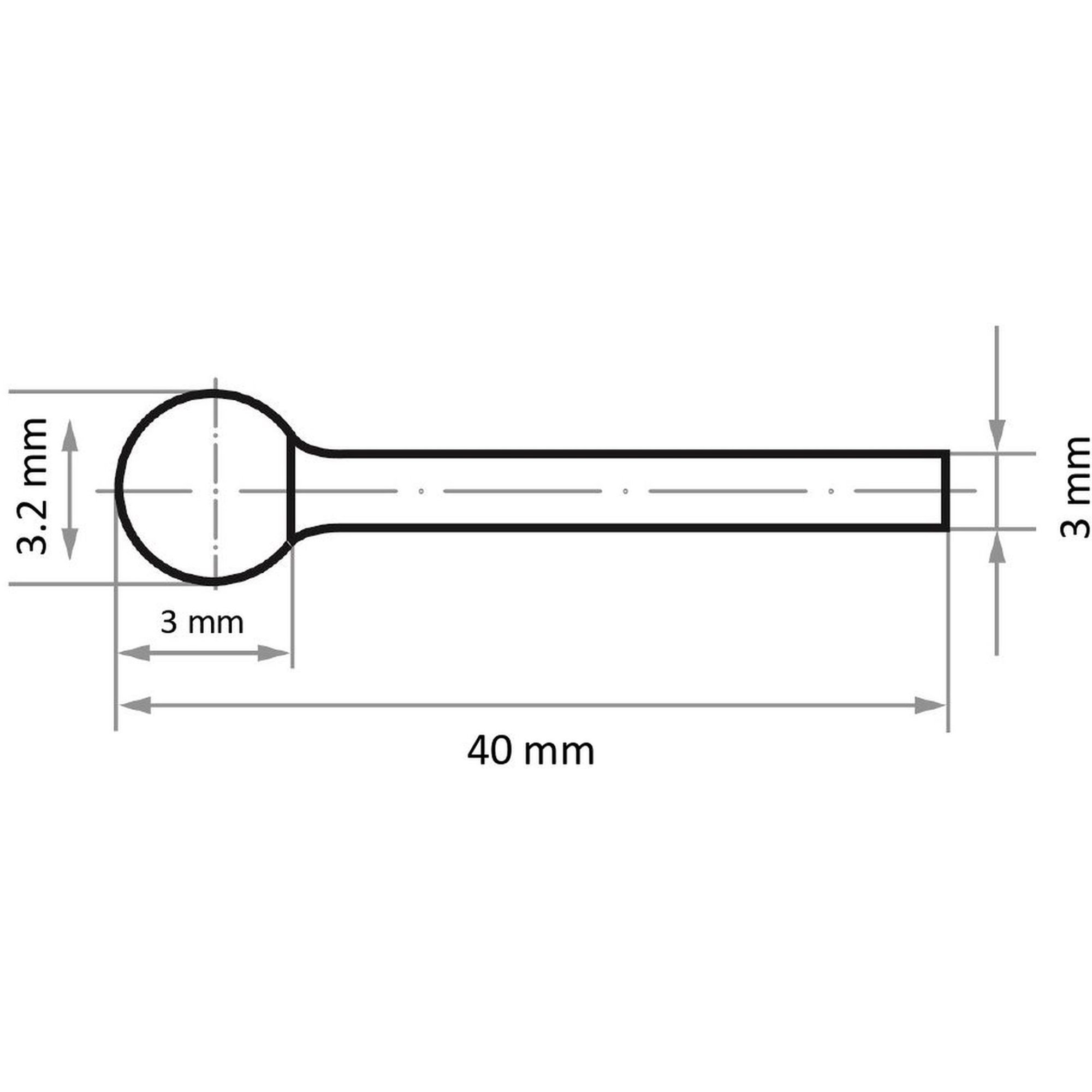 LUKAS HSS-Mini-Fräser MF Kugel Edelstahl/Stahl 3.2x3 mm Schaft 3 mm | Verz. 5