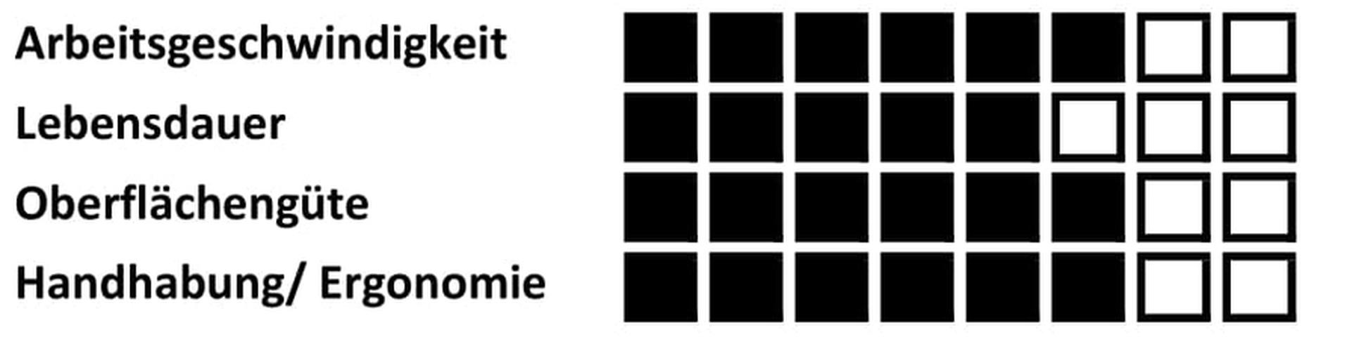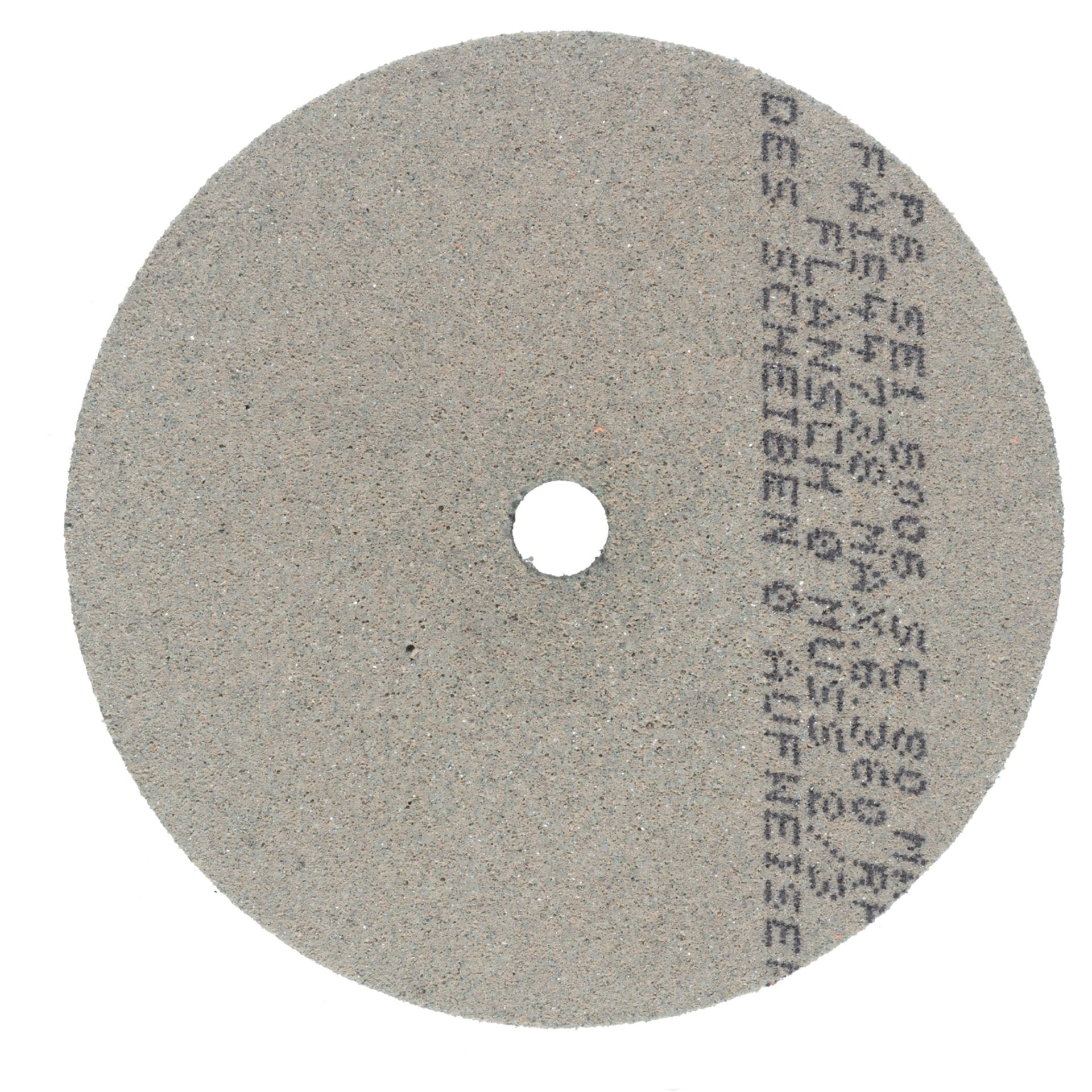 Das Besondere an dieser Polierscheibe ist das verwendete Material: Siliciumcarbid. Dieses Material ermöglicht einen kühlen Schliff und reduziert den Funkenflug erheblich. Dadurch ist die Polierscheibe sogar für die Luft- und Raumfahrt zugelassen.