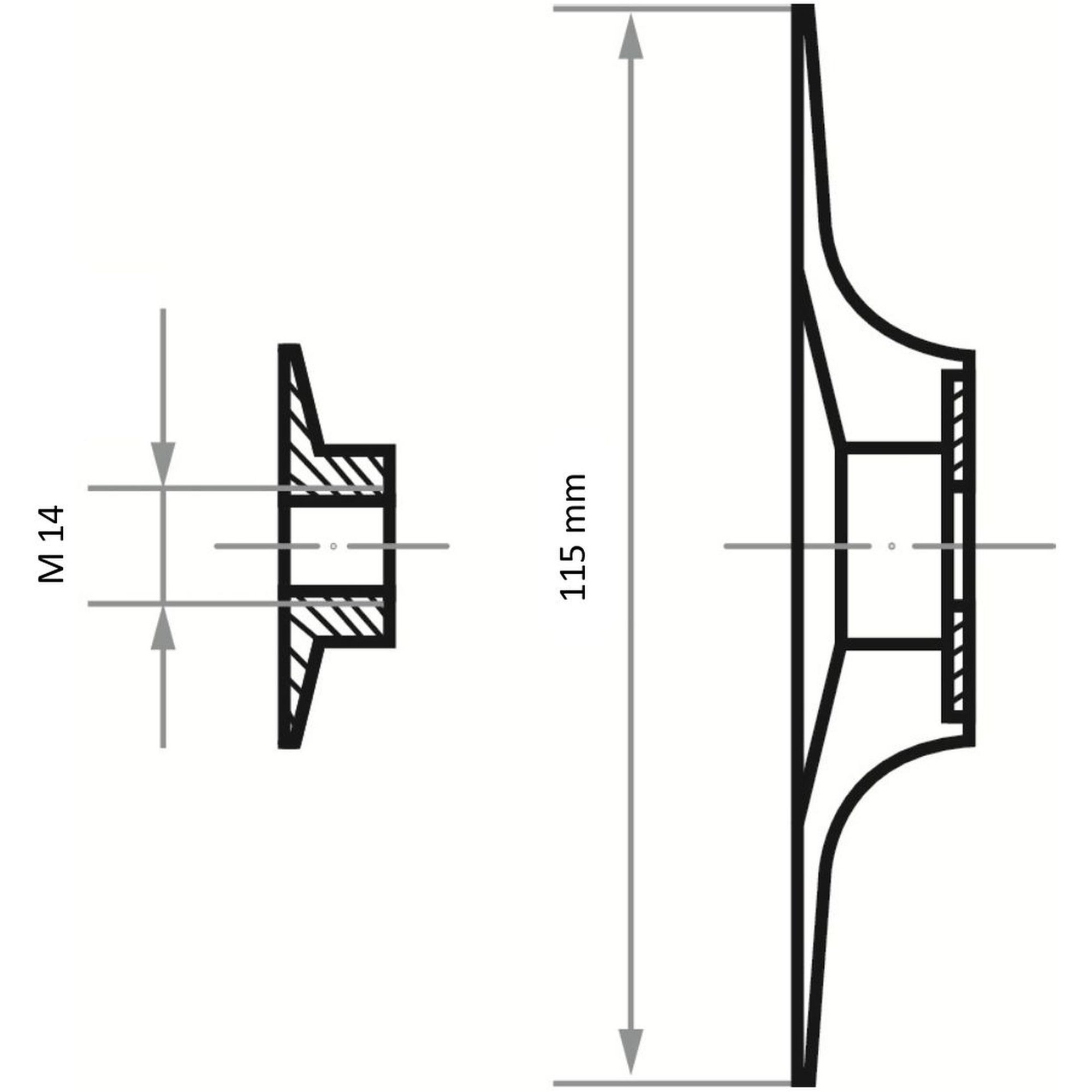 Der Stützteller hat einen Durchmesser von 115mm und ist somit ideal für den Einsatz mit Fiberscheiben dieser Größe geeignet. Das M14-Gewinde ermöglicht eine einfache und sichere Befestigung des Stütztellers an der Maschine. Durch die stabile Konstruktion ist der Stützteller robust und langlebig, sodass er auch bei anspruchsvollen Arbeiten zuverlässig seinen Dienst verrichtet.