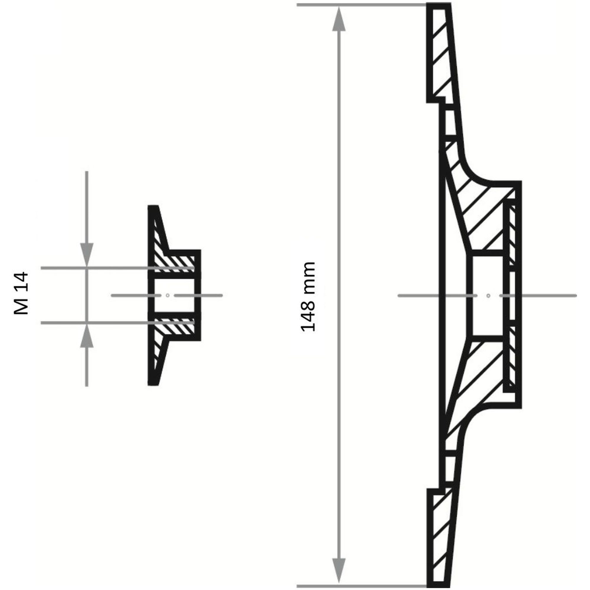 Der Stützteller hat einen Durchmesser von 150mm und ist mit einem M14-Gewinde ausgestattet. Dadurch ist er kompatibel mit einer Vielzahl von Maschinen und Werkzeugen. Sie können den Stützteller einfach auf die Spindel Ihrer Maschine schrauben und sofort mit der Arbeit beginnen.