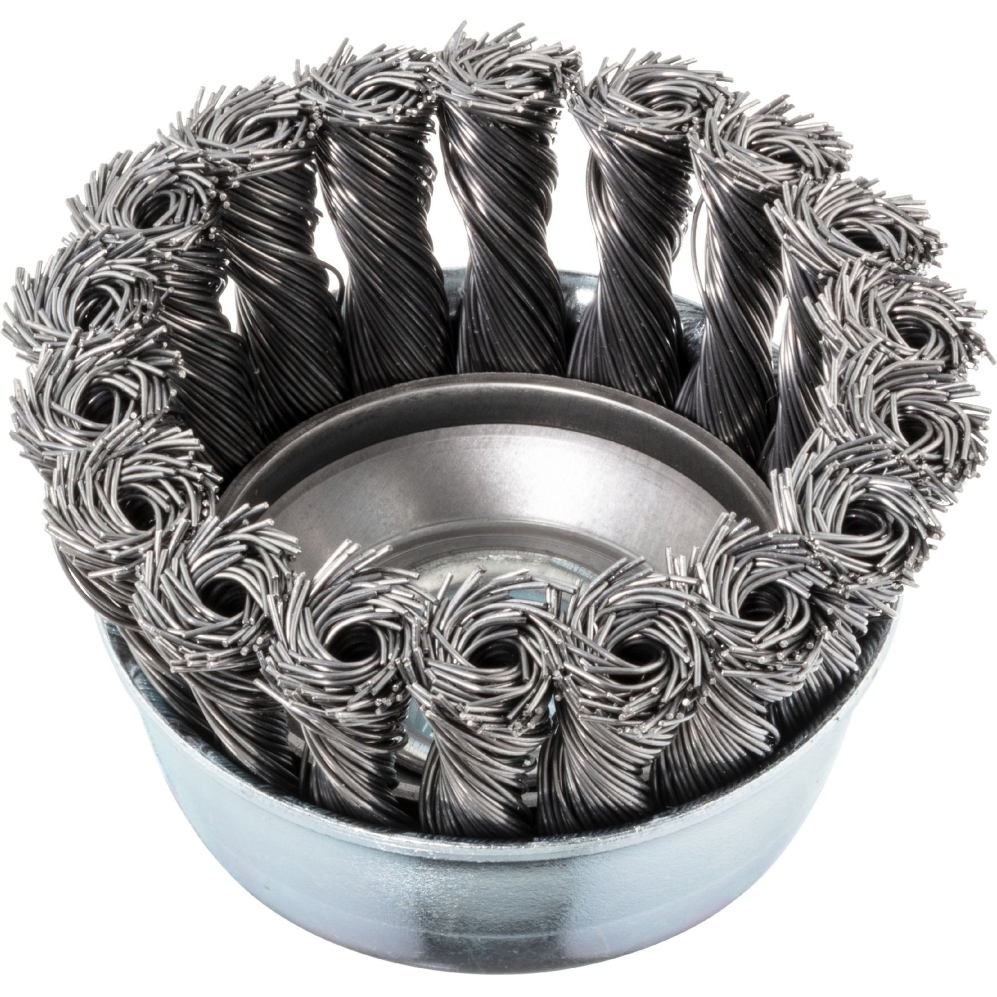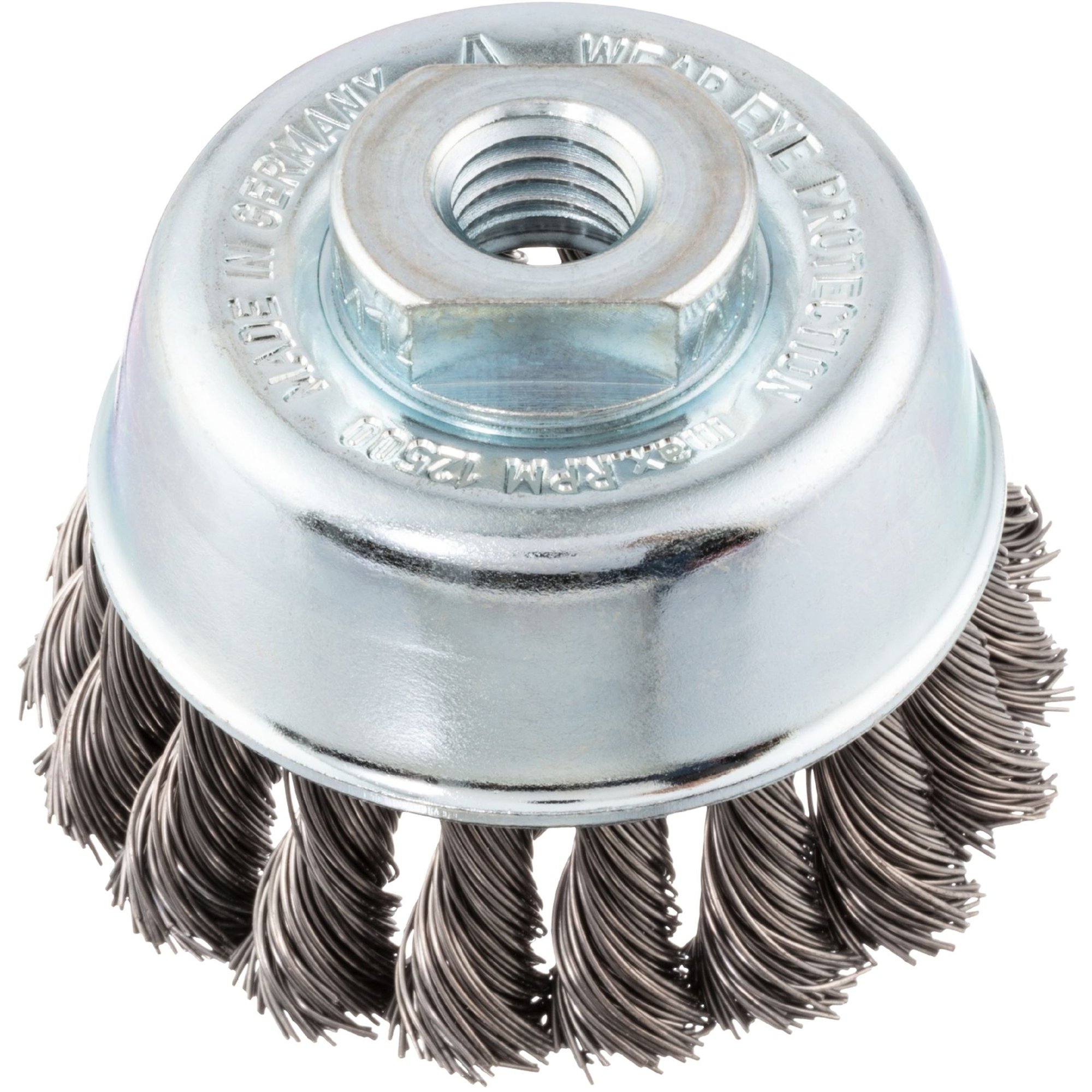 Die Topf-Form der Bürste ermöglicht auch einen stirnseitigen Einsatz. Dadurch sind Sie flexibel und können die Bürste in verschiedenen Winkeln und Positionen verwenden. Egal ob Sie schwer erreichbare Stellen reinigen oder Oberflächen bearbeiten möchten, diese Bürste ist für jede Aufgabe geeignet.