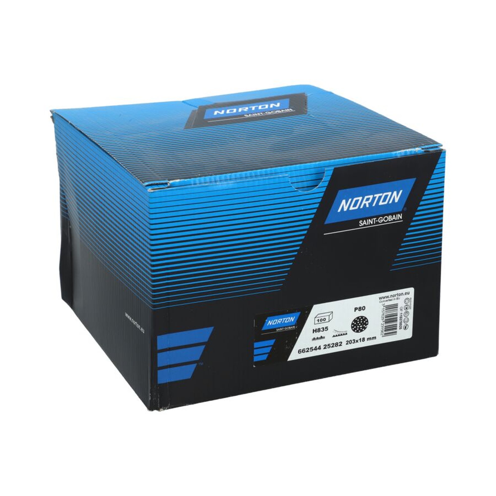Die Scheiben Klett 203x18mm K80 26+1 -Loch Norton BLUE FIRE repräsentieren eine fortschrittliche Option für effizientes Schleifen. Diese hochwertigen Schleifscheiben sind speziell für den Einsatz auf Exzenterschleifern entwickelt und eignen sich hervorragend für Anwendungen wie das Planschleifen von Spachtel, das Schleifen von Altlacken sowie das Blankschleifen von Metallen.