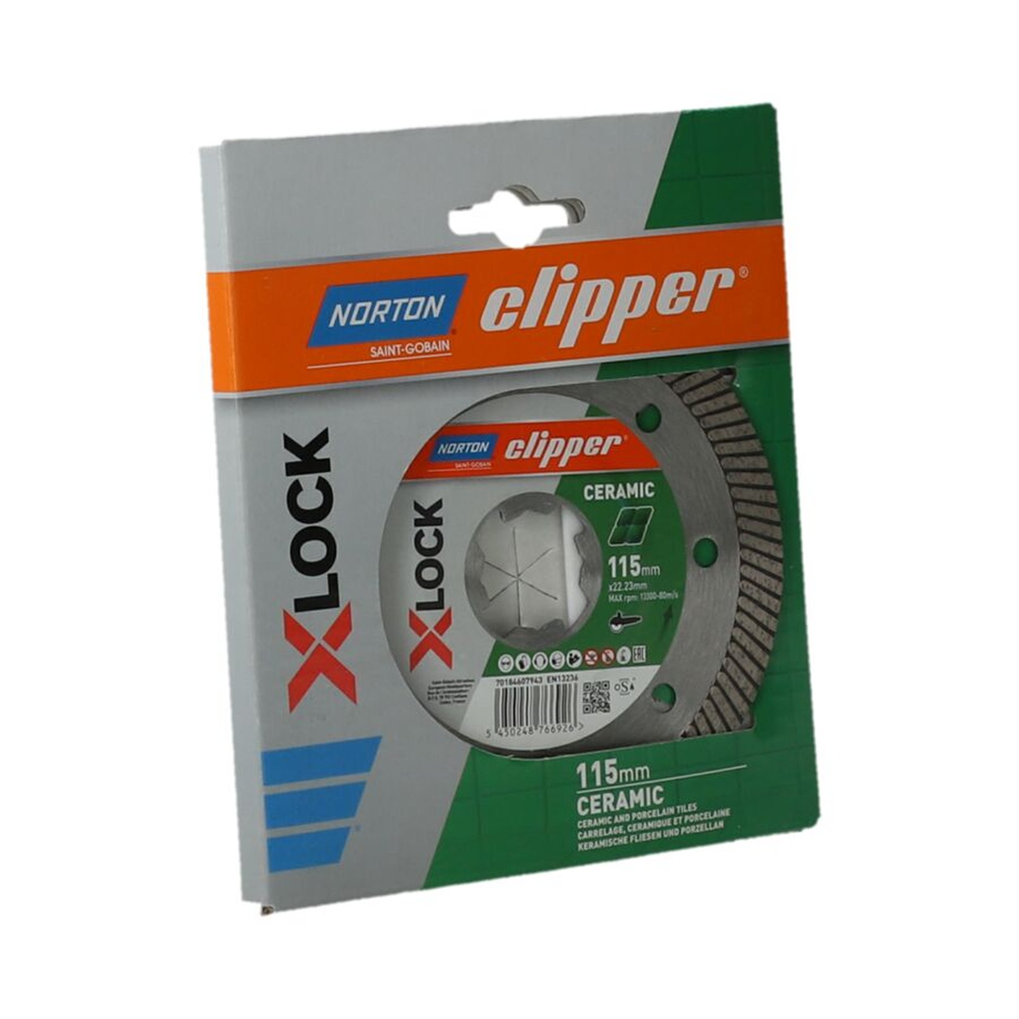 Die Norton Clipper Diamantscheibe CERAMIC 115x22.23mm ist speziell für die Bearbeitung von sowohl weichen als auch harten Fliesen und anderen keramischen Produkten entworfen. Mit einem Durchmesser von 115 mm und einer Bohrung von 22.23 mm passt diese Scheibe ideal für gängige Winkelschleifer und ist optimal für Trennarbeiten bei Fliesen und Naturstein geeignet.