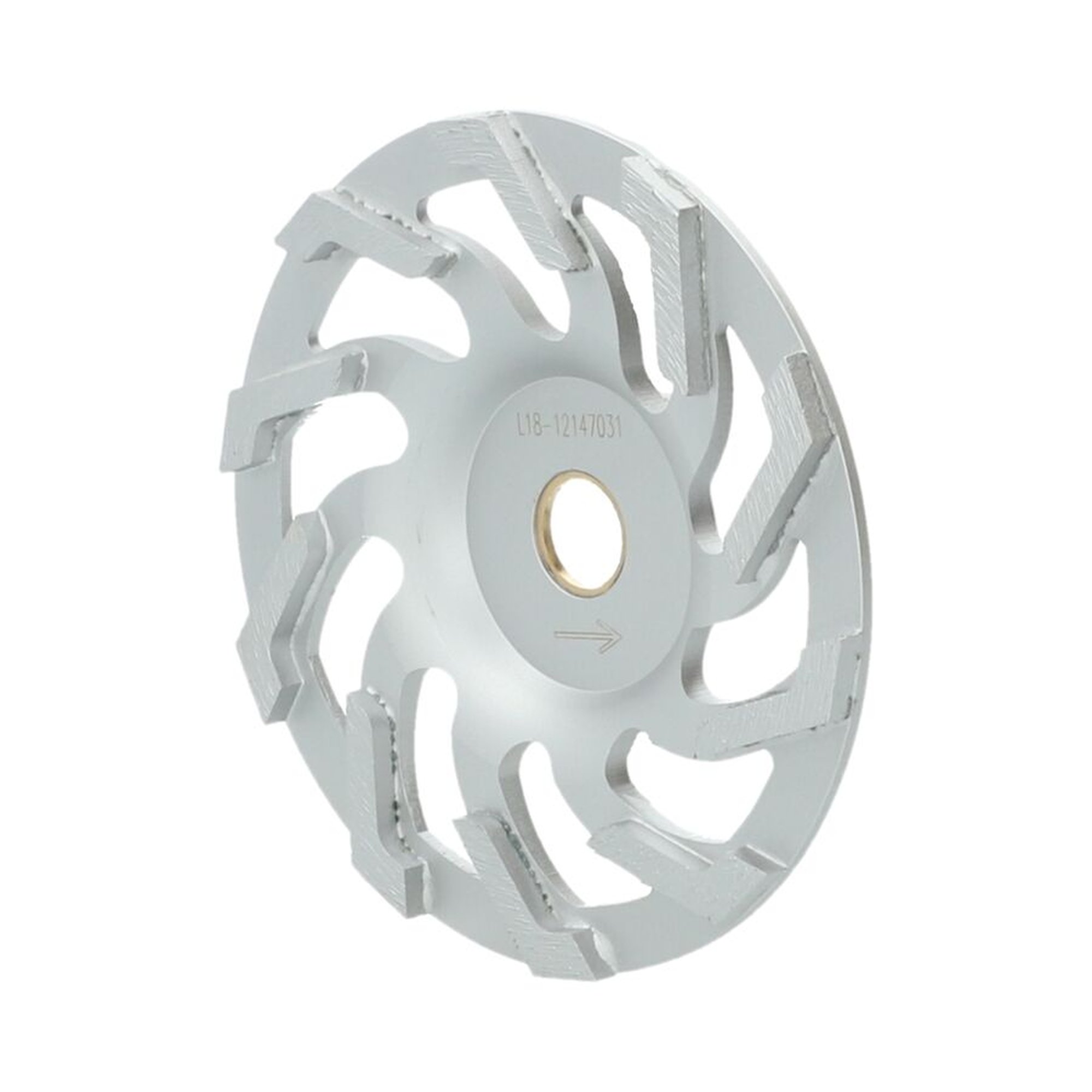 Leichter, flacher Diamant-Topfschleifer für effektive Betonreparaturen und Trockenschliff. Große Öffnungen für optimale Kühlung und Staubabsaugung. Ideal für Winkelschleifer.,