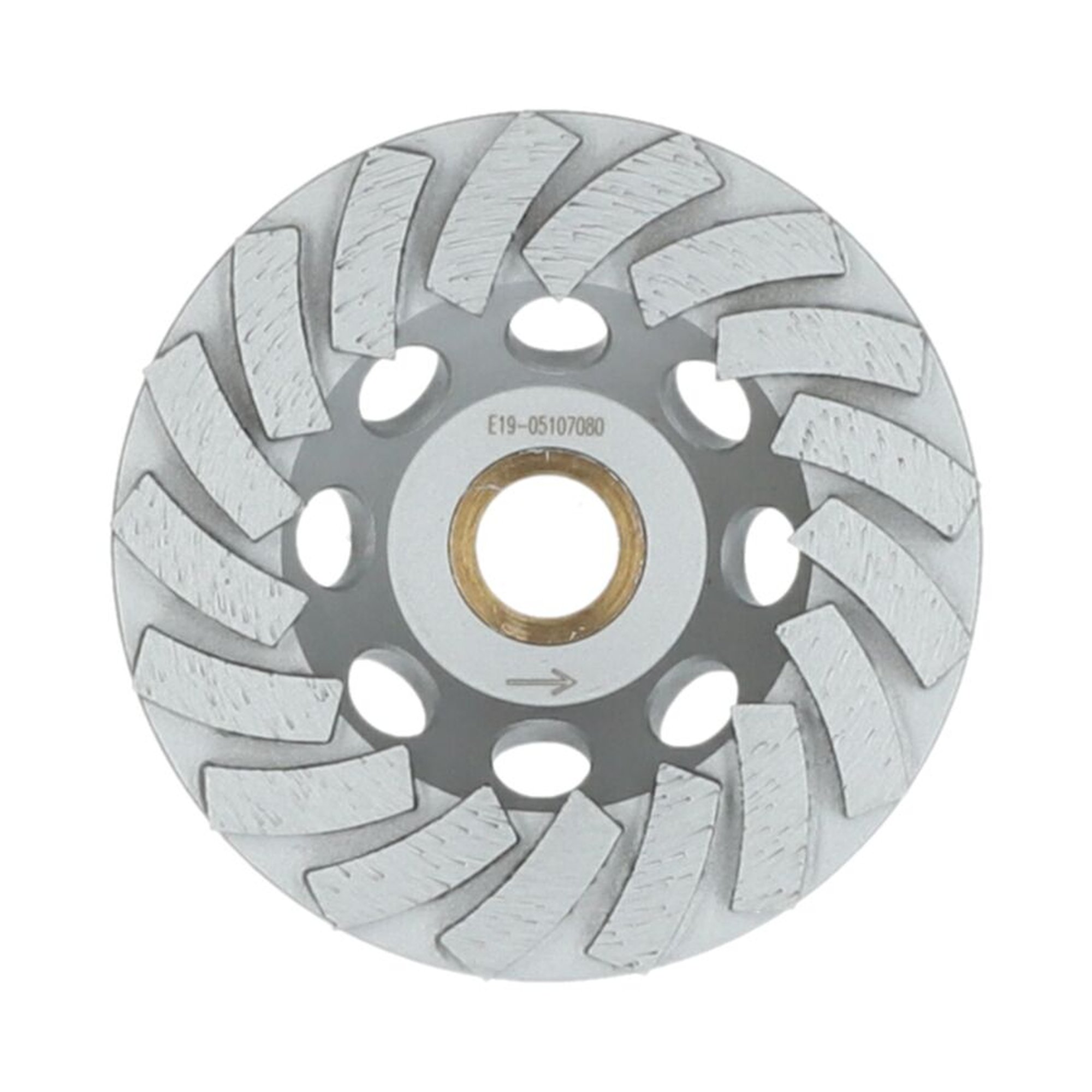 Dank der innovativen \Turbo-Segment\-Geometrie ermöglicht dieses Werkzeug eine besonders schnelle Entfernung von Material. Diese Technologie fördert nicht nur ein effektives Schleifen, sondern gewährleistet auch ein sehr gutes Finish, was die Zeit für Nachbearbeitungen deutlich reduziert. Die Anwendung des Topfschleifers ist optimal zur Behebung von Oberflächendefekten an Baumaterialien wie Beton und Ziegel geeignet.