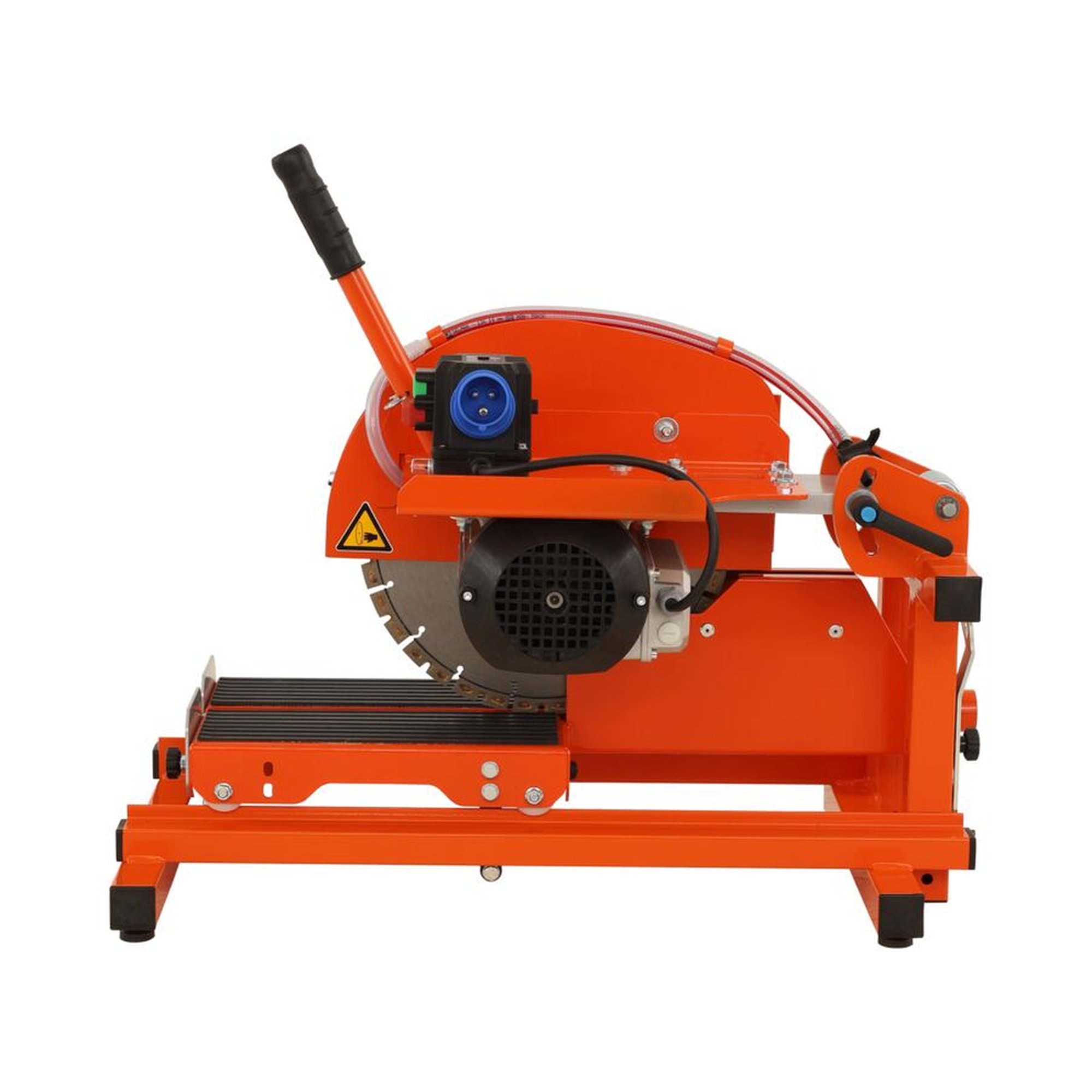 Dank ihrer Fähigkeit, sowohl Trocken- als auch Nassschnitte durchzuführen, ist diese Maschine äußerst vielseitig. Sie verfügt über eine Staubabsaugeöffnung, die den Anschluss eines Industriestaubsaugers ermöglicht, was den Arbeitsbereich sauber hält und die Gesundheit der Anwender schützt. Der Einsatz von Kühlwasserschläuchen erlaubt zudem das Nassschneiden durch Anschluss an eine externe Wasserversorgung oder an eine optionale Wasserpumpe.