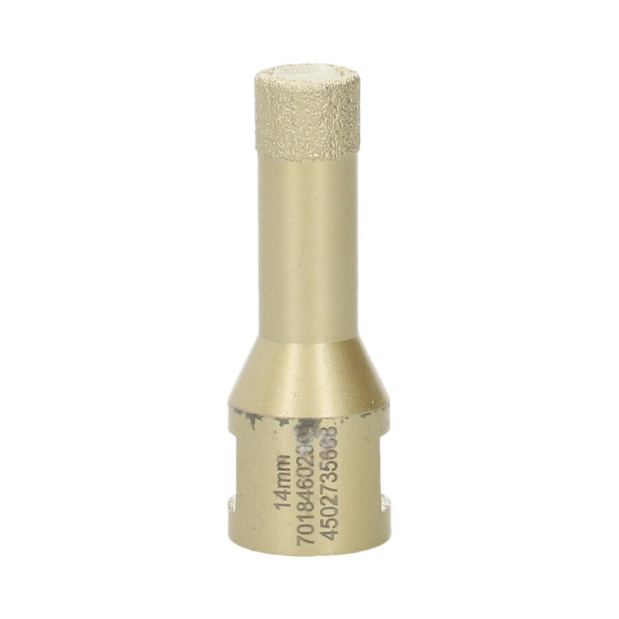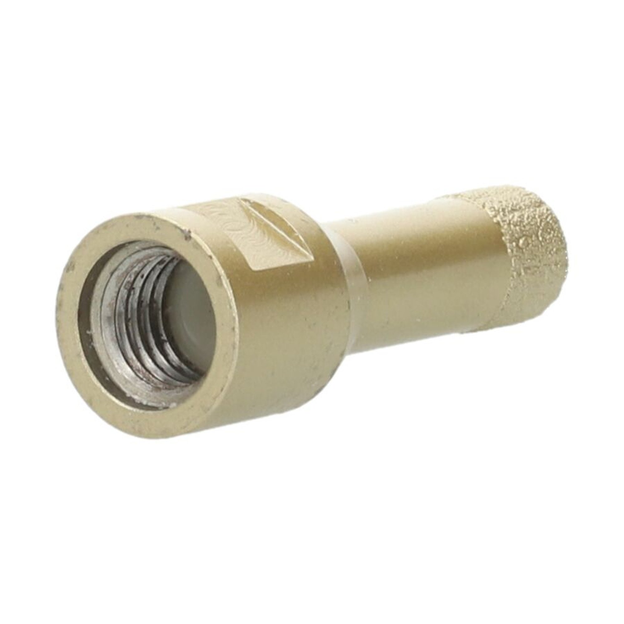 Vakuumgelötete Diamantbohrkrone für präzises Trockenbohren von harten Keramikfliesen und Natursteinen. Direkte Montage auf Winkelschleifer mit M14-Anschluss.,