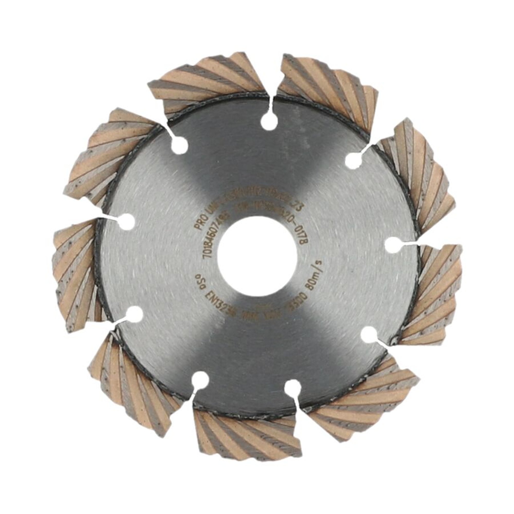 Die Norton Clipper PRO UNIVERSAL LASER Diamantscheibe zeichnet sich durch hochwertige Verarbeitung und Vielseitigkeit aus. Mit einem Durchmesser von 115x22.23mm und lasergeschweißten Segmenten bietet dieses Werkzeug einen effizienten und sicheren Schnitt durch diverse Baumaterialien. Die Segmenthöhe von 12 mm gewährleistet dabei eine besonders lange Lebensdauer.