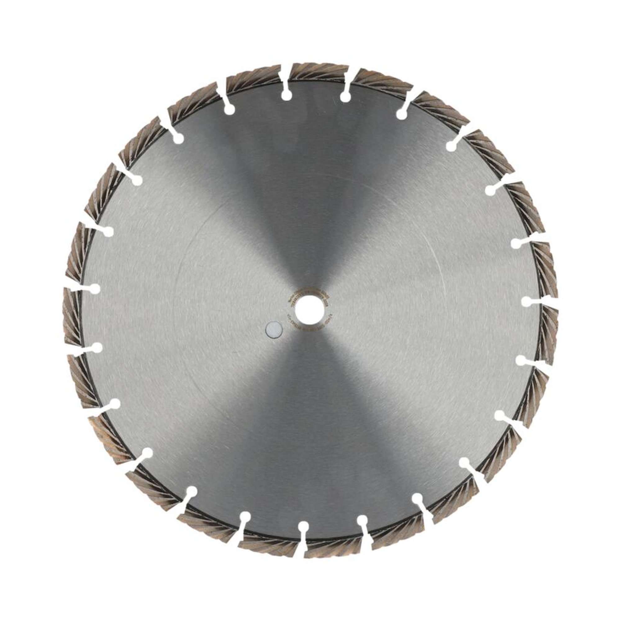 Langlebige 350x20mm Diamantscheibe für Nass- und Trockenschnitte, ideal für Betonplatten und Baumaterialien. Optimiert mit lasergeschweißten Segmenten und innovativen Kühlungslöchern.,