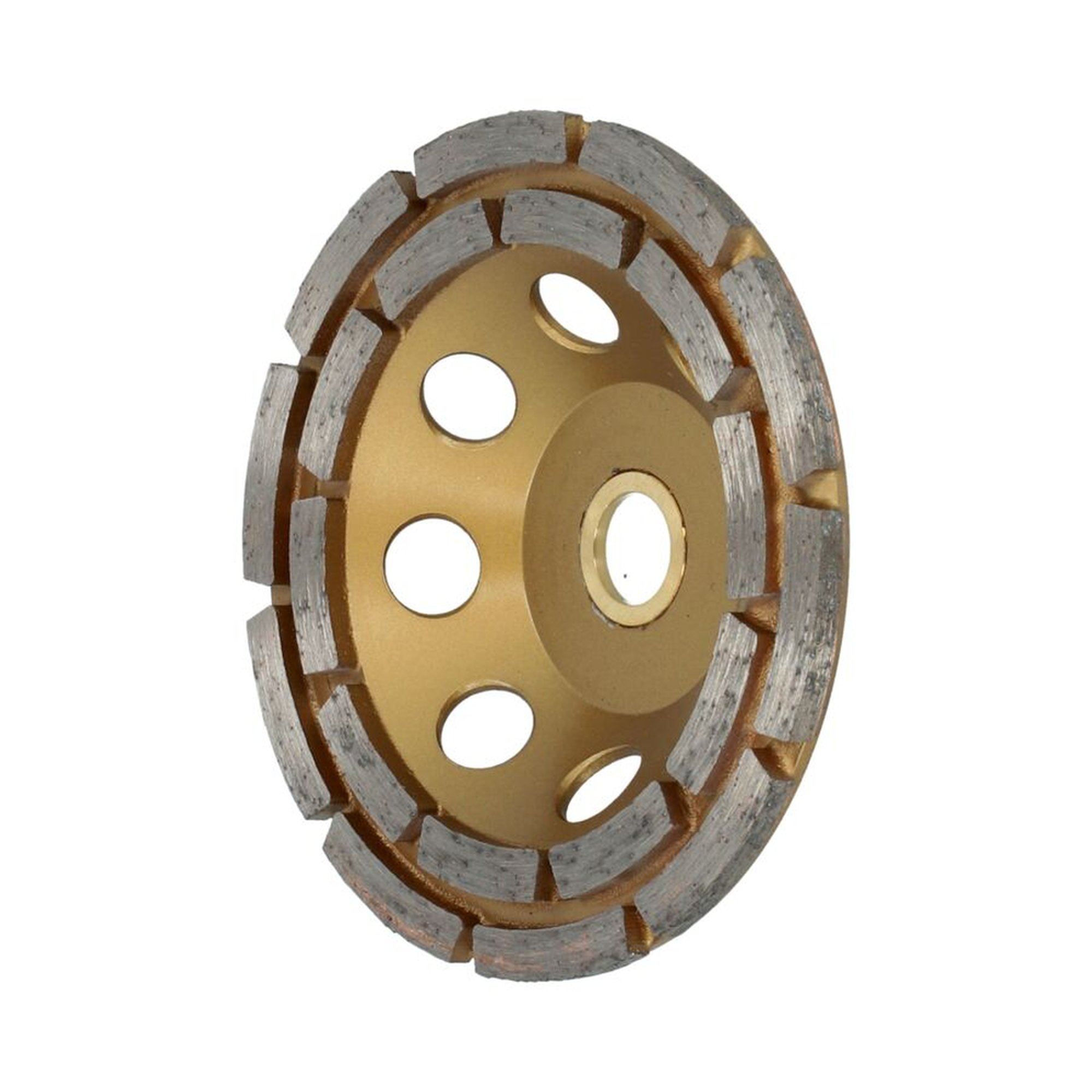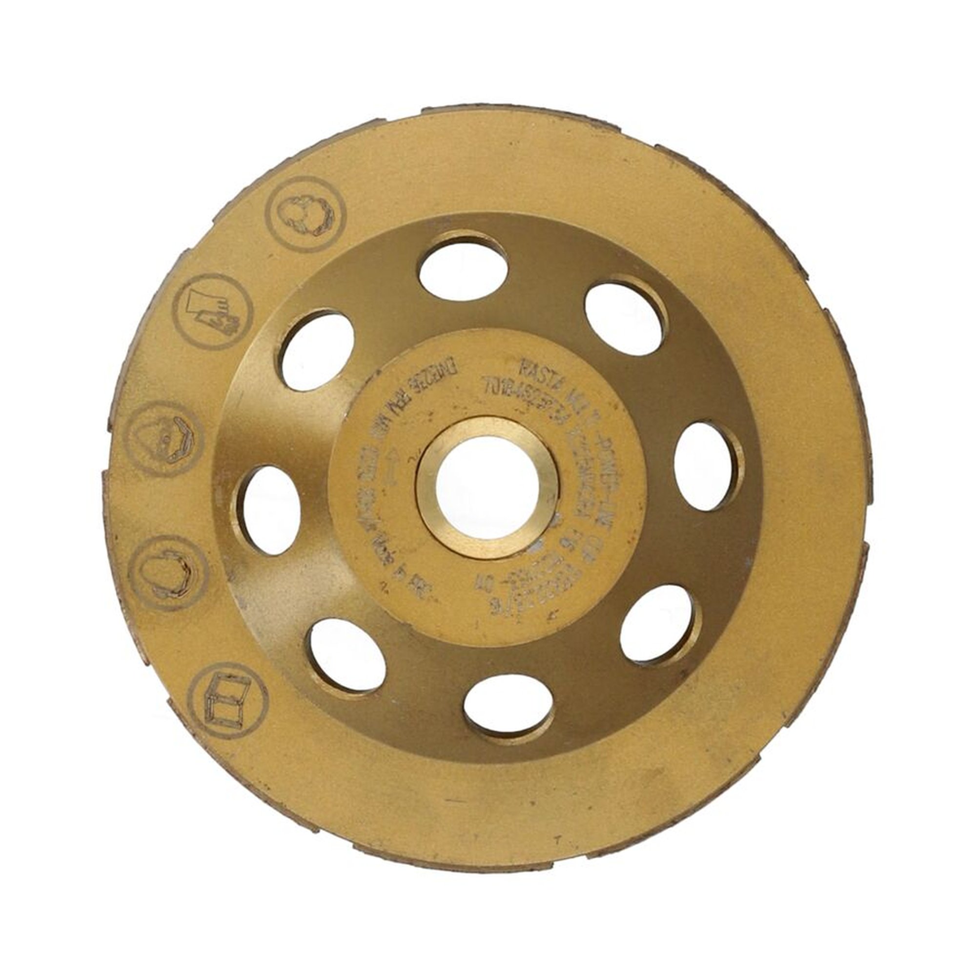 Die Größe des Diamant-Topfschleifers, 125x22.22mm, ist optimal für den Einsatz mit handelsüblichen Winkelschleifern geeignet. Die gelötete Technik der Diamantsegmente gewährleistet eine hohe Haltbarkeit und Langlebigkeit des Werkzeugs. Dies trägt zu einer verbesserten Wirtschaftlichkeit bei durchgehend hohen Leistungsstandards bei.