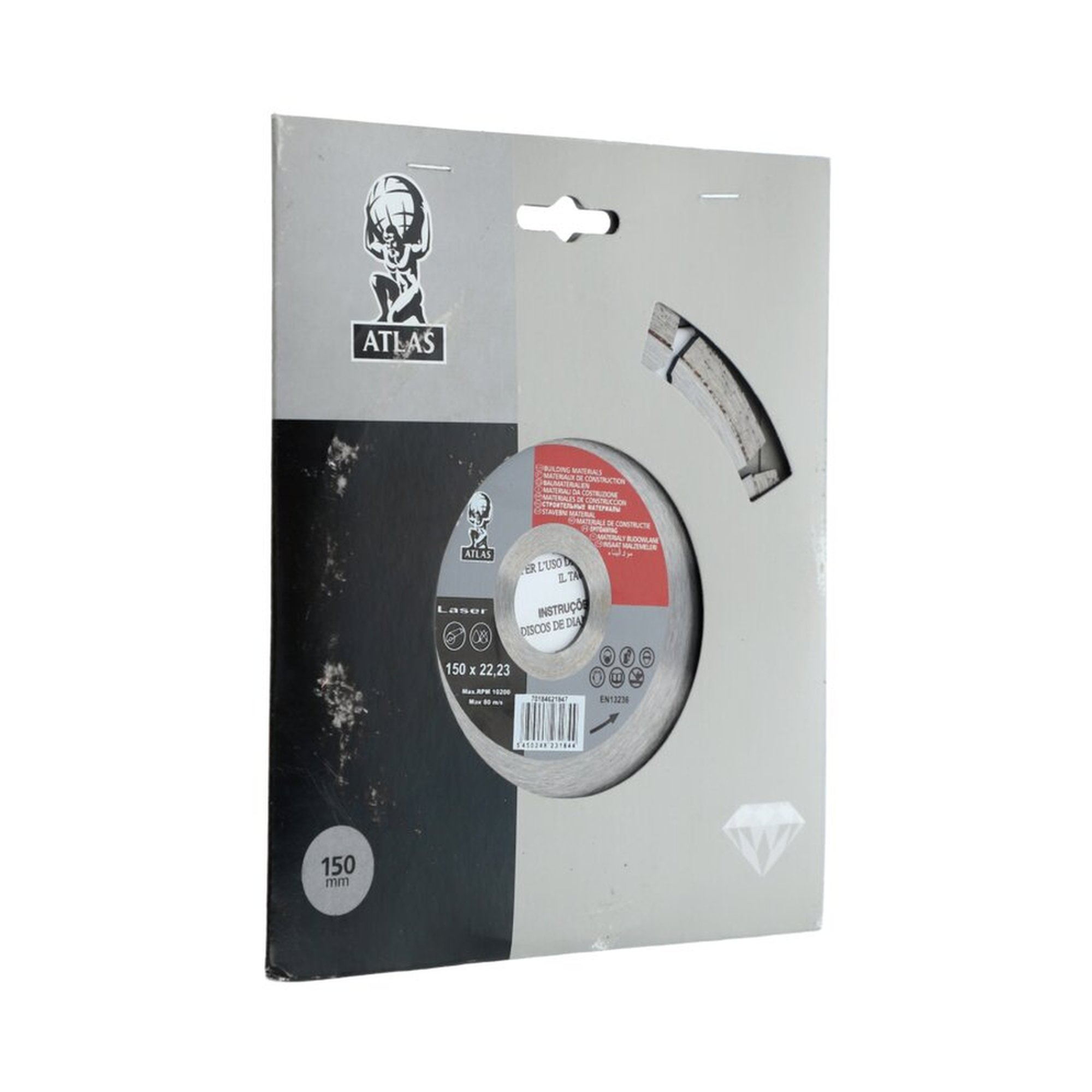 Die Kombination aus fortschrittlicher Lasertechnologie und hochwertigen Materialien macht die Diamantscheibe 150x22.23mm Atlas LASER zu einer zuverlässigen Wahl für Fachleute, die präzise und schnelle Schnitte in verschiedenen Baumaterialien benötigen.