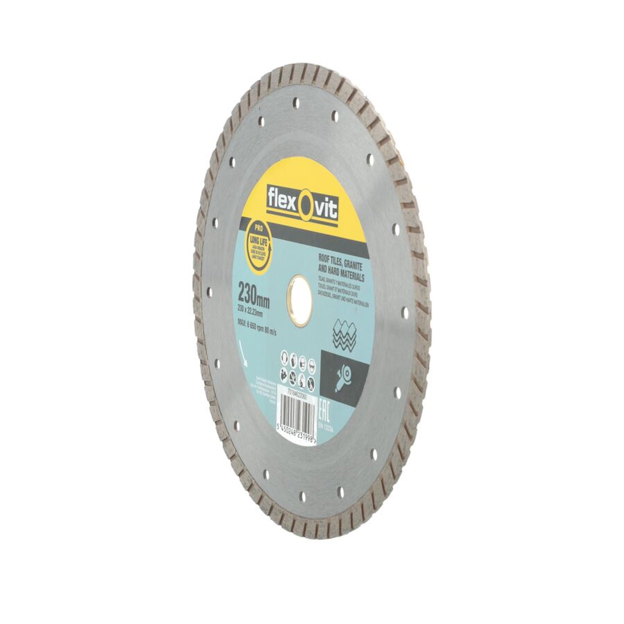 Die Diamantscheibe Flexovit MERCHANDISING CR TURBO PRO mit den Maßen 230x22.23mm stellt eine hochwertige Lösung für das Trennen von Baumaterialien in professionellen Anwendungen dar. Entwickelt für den Einsatz in Winkelschleifern, eignet sich dieses Produkt besonders für das Baugewerbe sowie für Bohr- und Sägebetriebe.