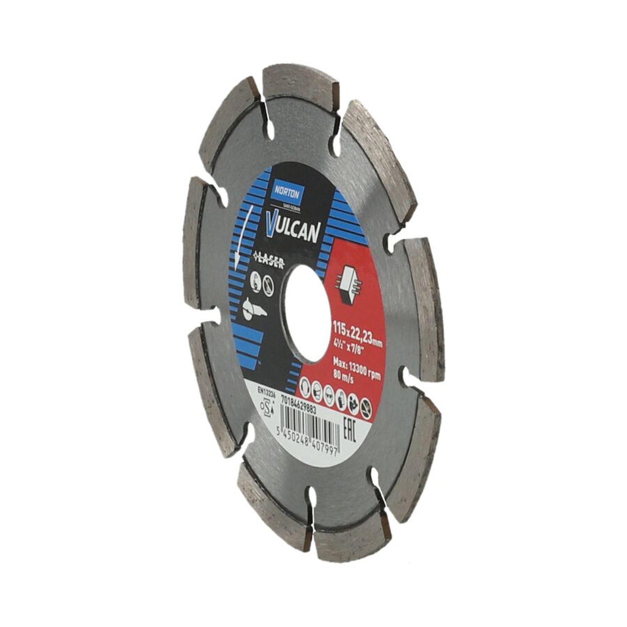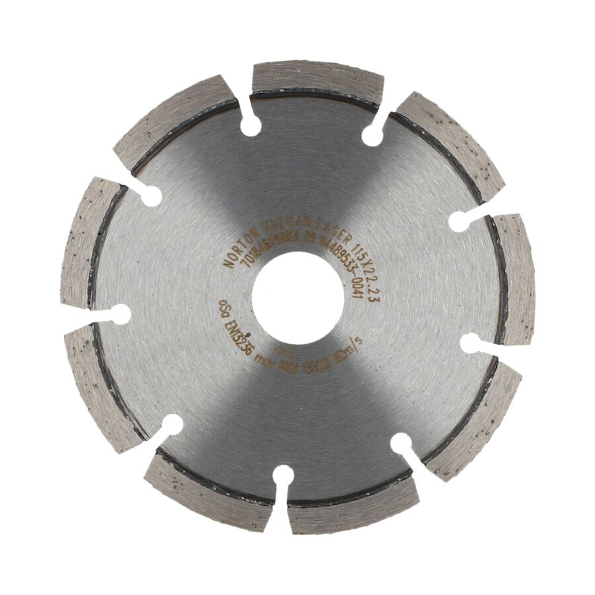 Die Norton Vulcan VULCAN LASER Diamantscheibe ist ideal für professionelle Anwendungen im Baugewerbe, einschließlich Hochbau sowie bei Bohr- und Sägebetrieben. Mit einem Durchmesser von 115 mm und einer Bohrung von 22.23 mm ist dieses Werkzeug speziell entwickelt worden, um eine effiziente und präzise Bearbeitung von einer Vielzahl von Materialien wie Stahlbeton, Festbeton, Hartklinker, Betonplatten, Betonrinden, Kalkstein, Klinkerpflastersteinen und Vormauerziegeln zu ermöglichen.