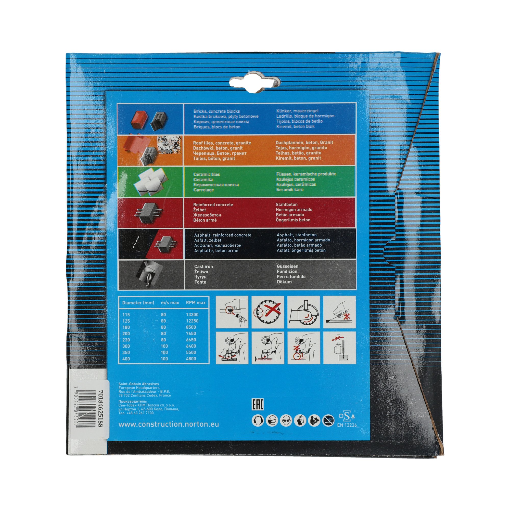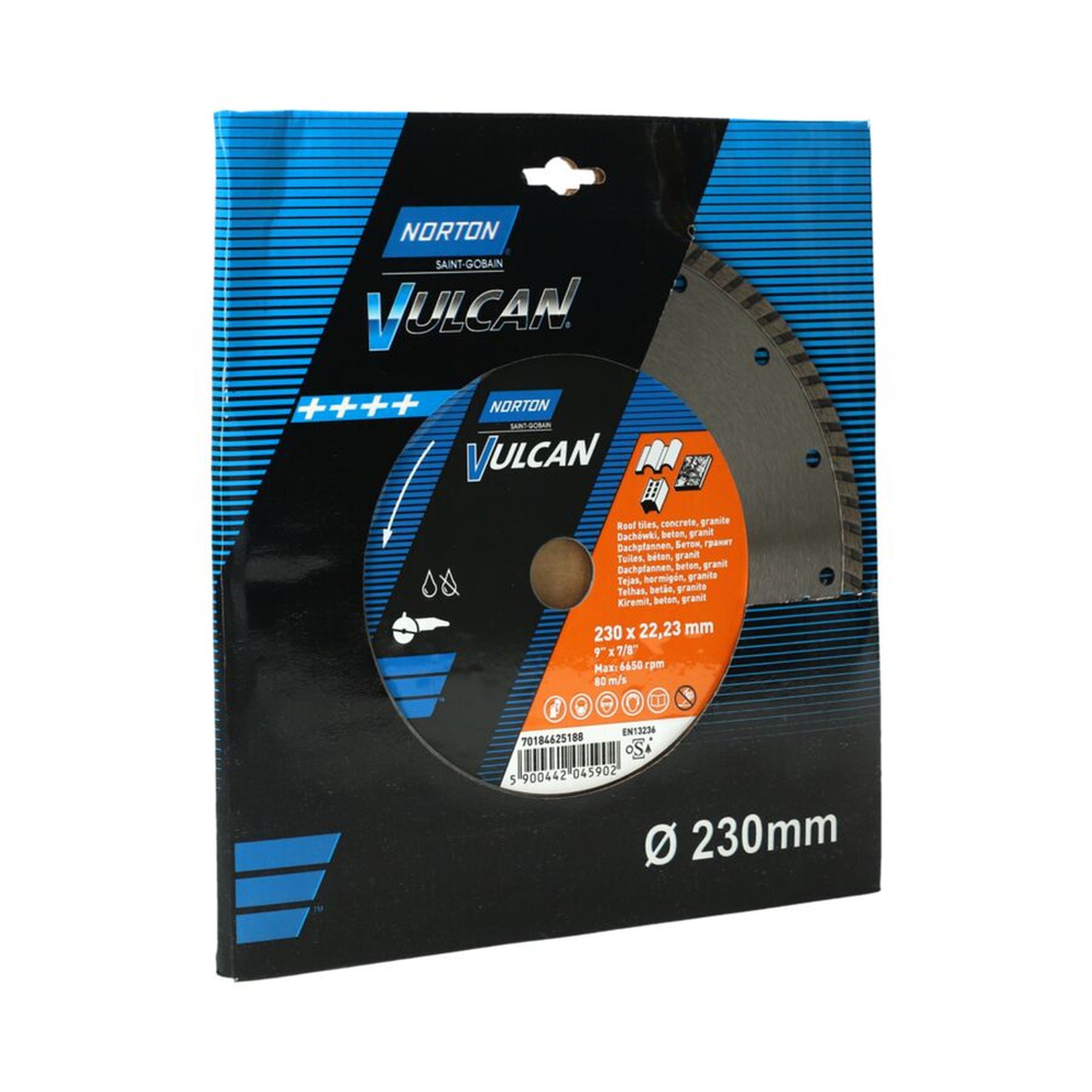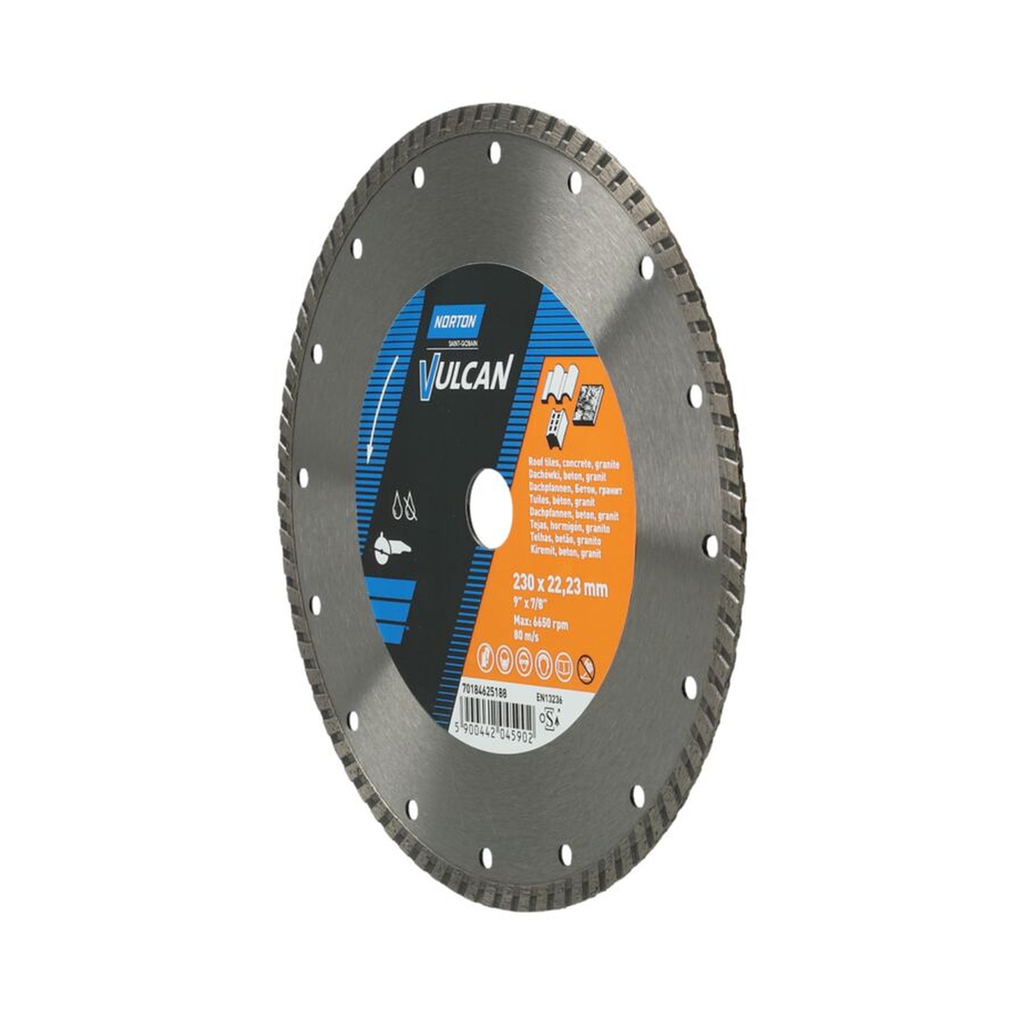Die Norton Vulcan VULCAN JET Diamantscheibe zeichnet sich durch ihre hochwertige Verarbeitung und vielseitigen Einsatzmöglichkeiten aus. Mit einem Durchmesser von 230 mm und einer Bohrung von 22.23 mm ist diese Scheibe ideal für professionelle Anwendungen im Baugewerbe, insbesondere für Bohr- und Sägebetriebe sowie Baustoffhersteller.