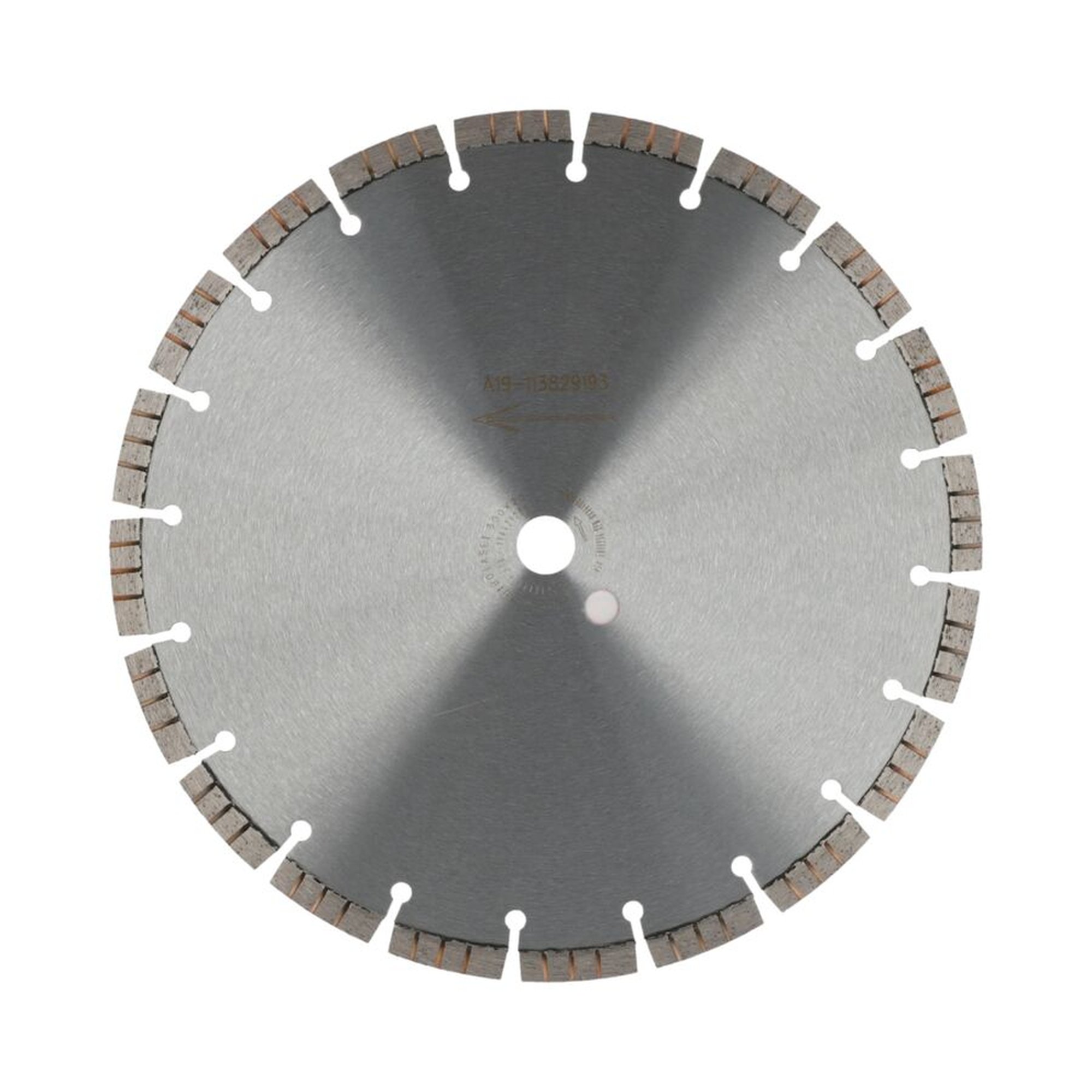 Lasergeschweißte, turbo-segmentierte Diamantscheibe für Trocken- oder Nassschnitte in Beton und Natursteinen. Ideal für Stahlbeton, bietet ein gutes Preis-Leistungs-Verhältnis.,