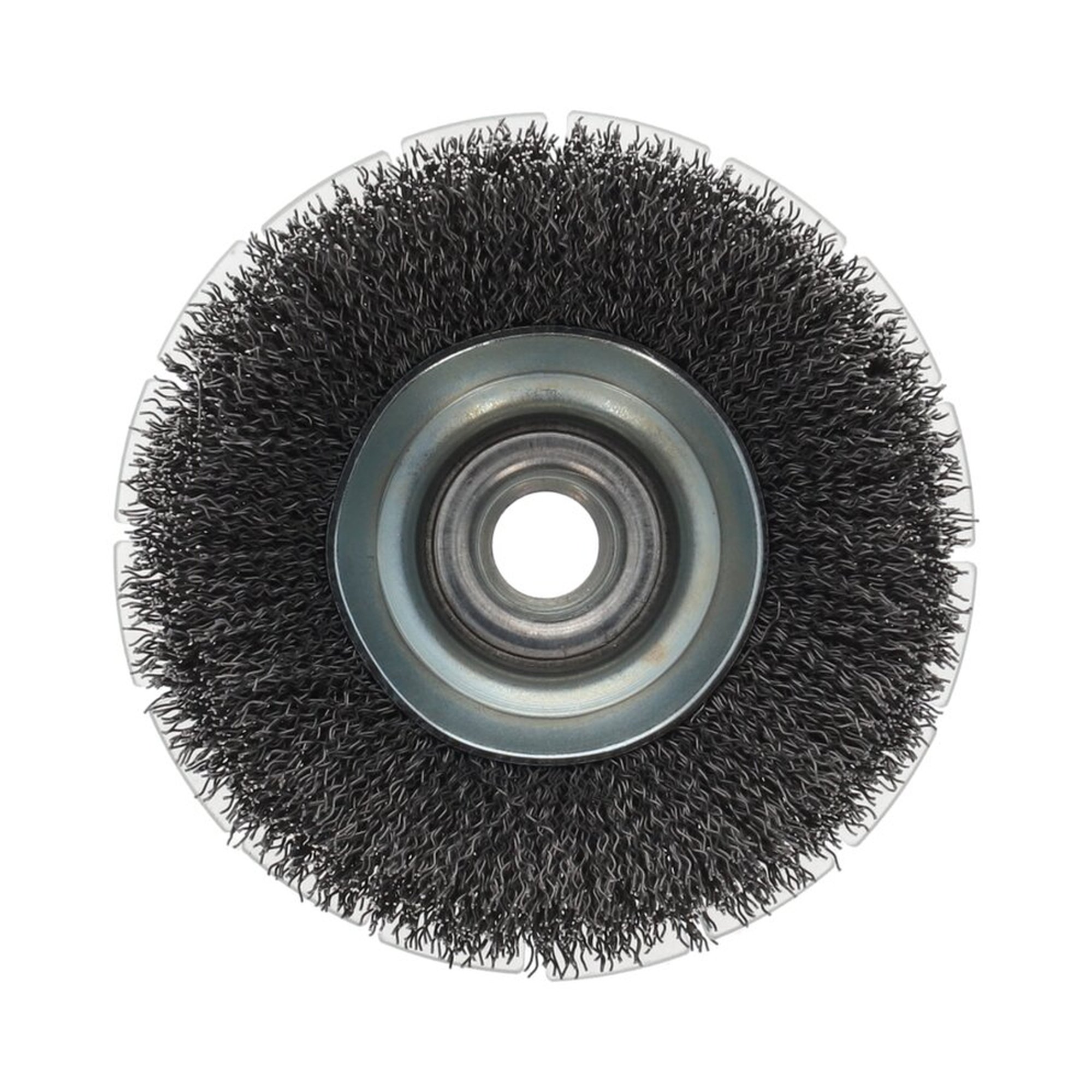Mit einer Größe von 100 mm Durchmesser bietet die Bürste eine ausreichende Fläche für schnelle und effektive Reinigungs- und Vorbereitungsarbeiten. Die Stahlborsten sind robust genug, um auch bei intensiver Nutzung eine lange Lebensdauer zu gewährleisten.