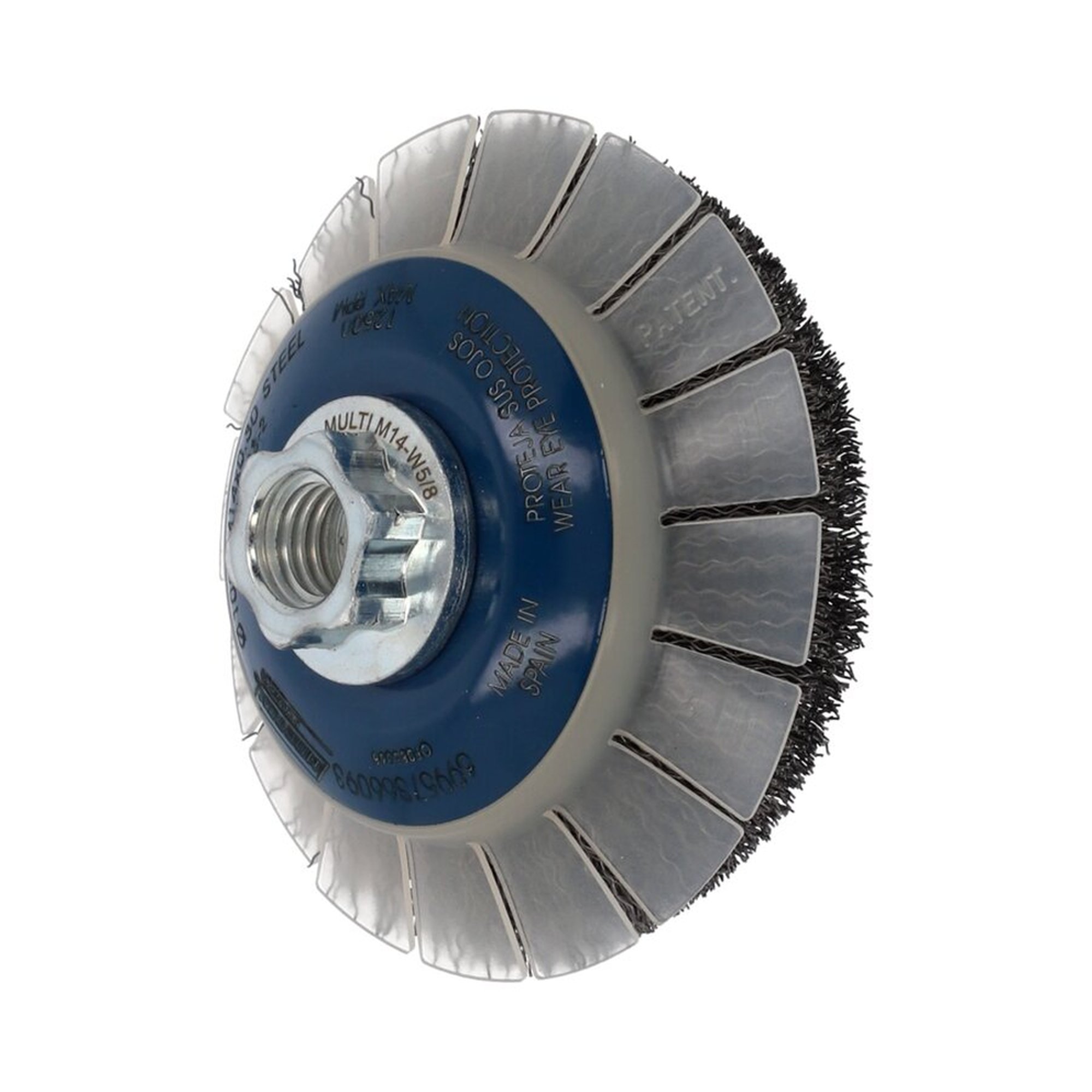 Die Norton Drahtbürste für Winkelschleifer ist eine spezialisierte Lösung für das effiziente Abtragen von Metall, das Entfernen von Korrosion sowie Schweißnähten und dient zudem der groben Oberflächenvorbereitung. Mit einem Drahtdurchmesser von 0,3 mm ist diese Bürste ideal für leichtere Anwendungen, die eine hohe Flexibilität verlangen. Der dünnere Stahldraht ermöglicht eine präzise Bearbeitung, ohne das Material zu stark zu belasten.