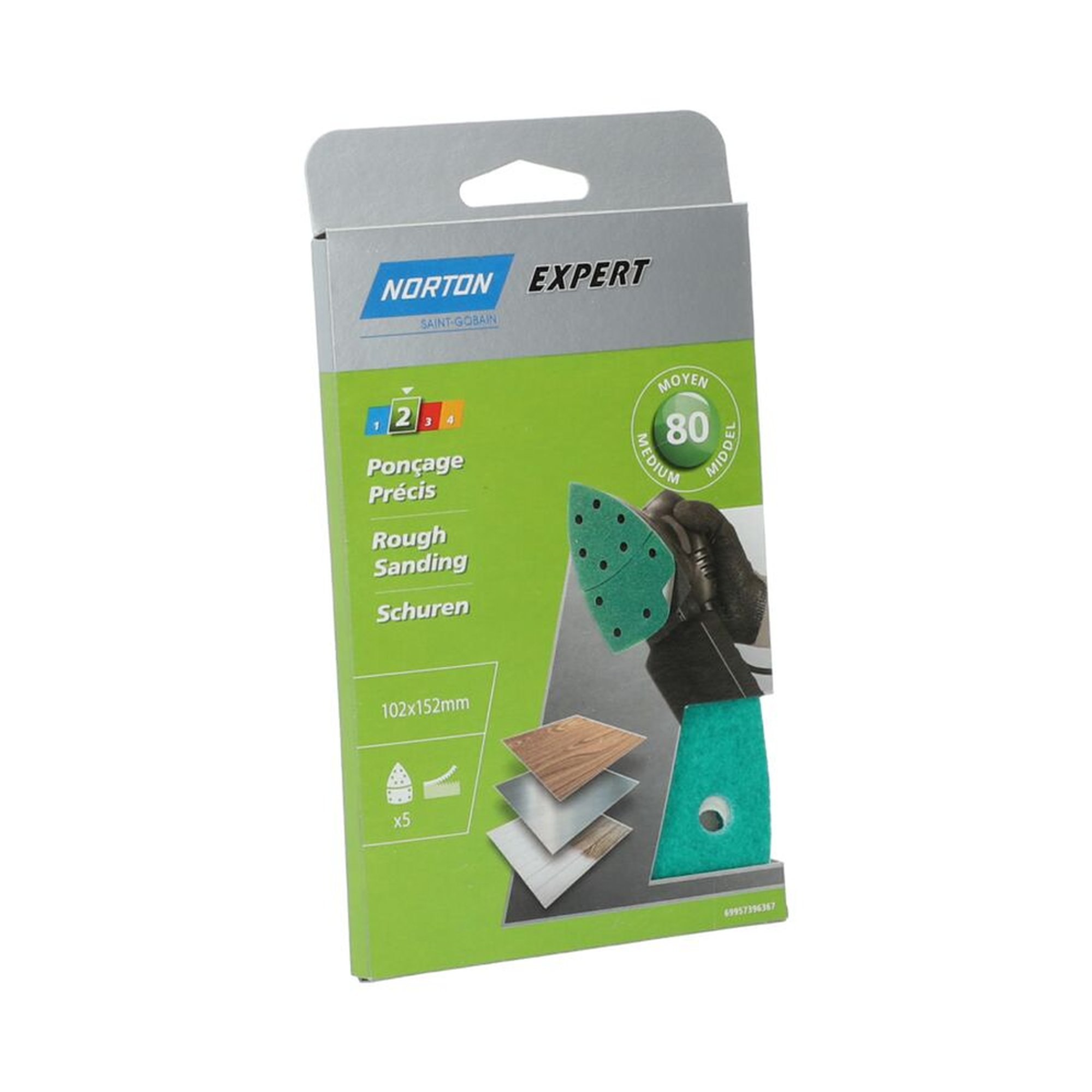 Norton EXPERT Schleifstreifen Klett 102x152mm K80 6+5-Loch, 5 Stück