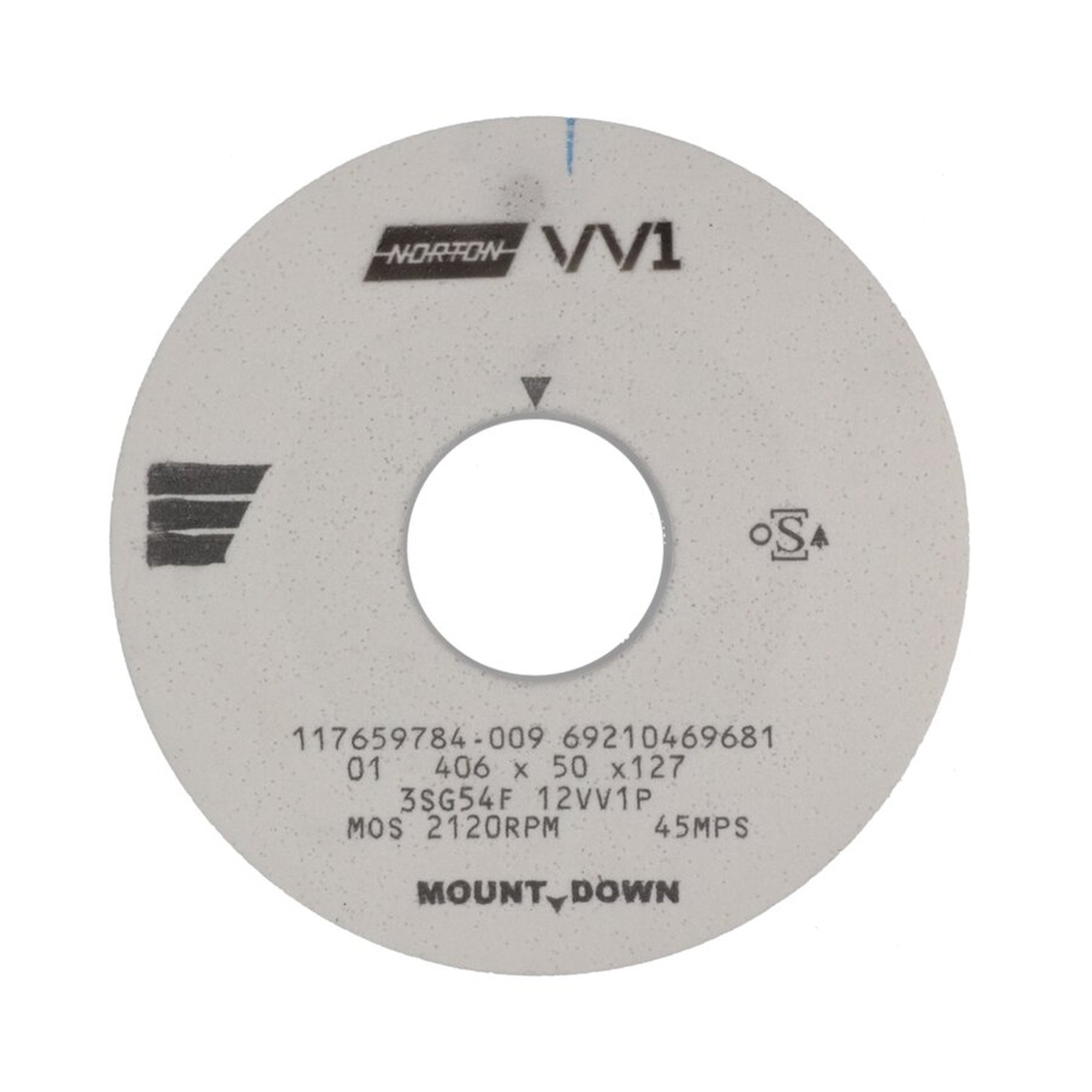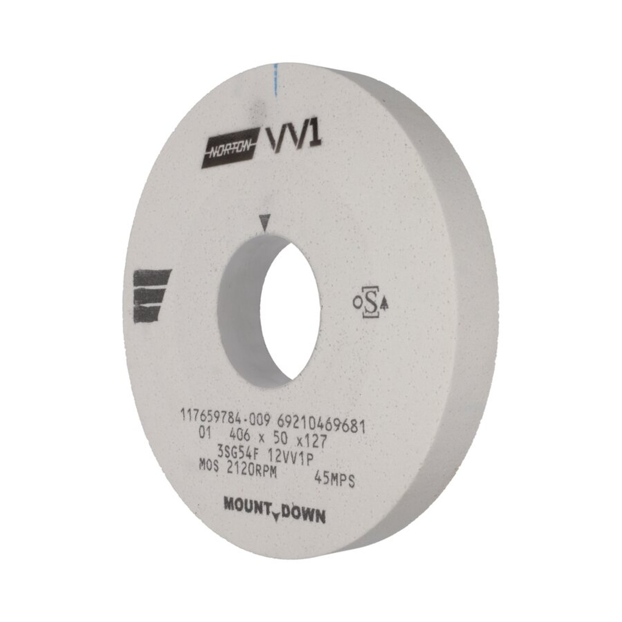 Die NORTON VV1 Schleifscheibe ist speziell für das Flachschleifen konzipiert und eignet sich hervorragend für den Einsatz auf Rundschleifmaschinen. Mit den Abmessungen 406x50x127mm und einer Körnung von K54 bietet sie eine optimale Balance zwischen Abtragsleistung und Oberflächengüte.